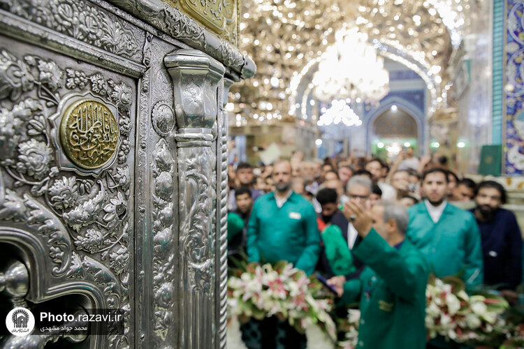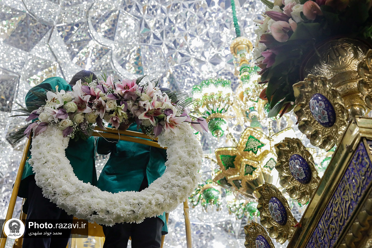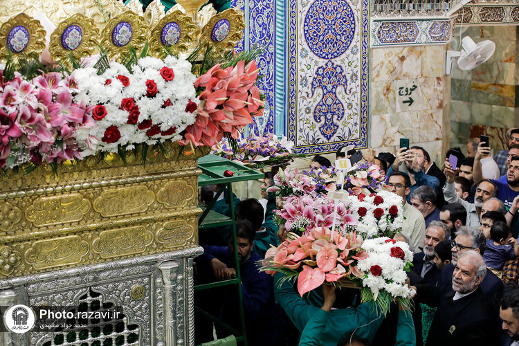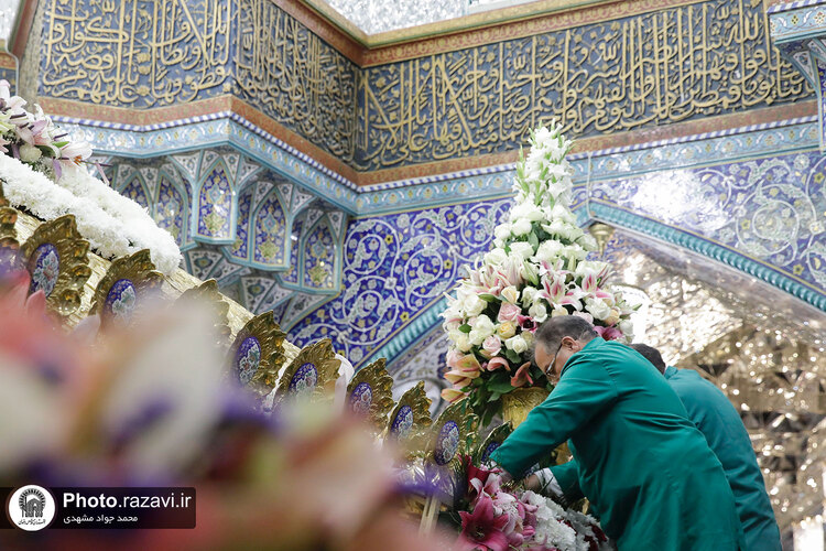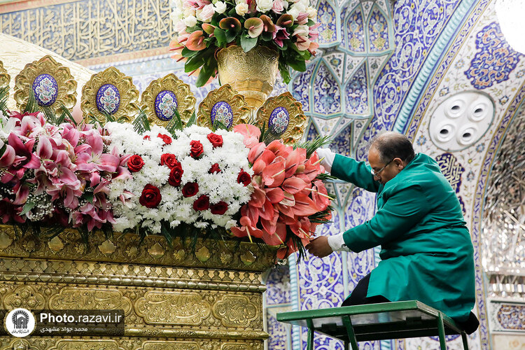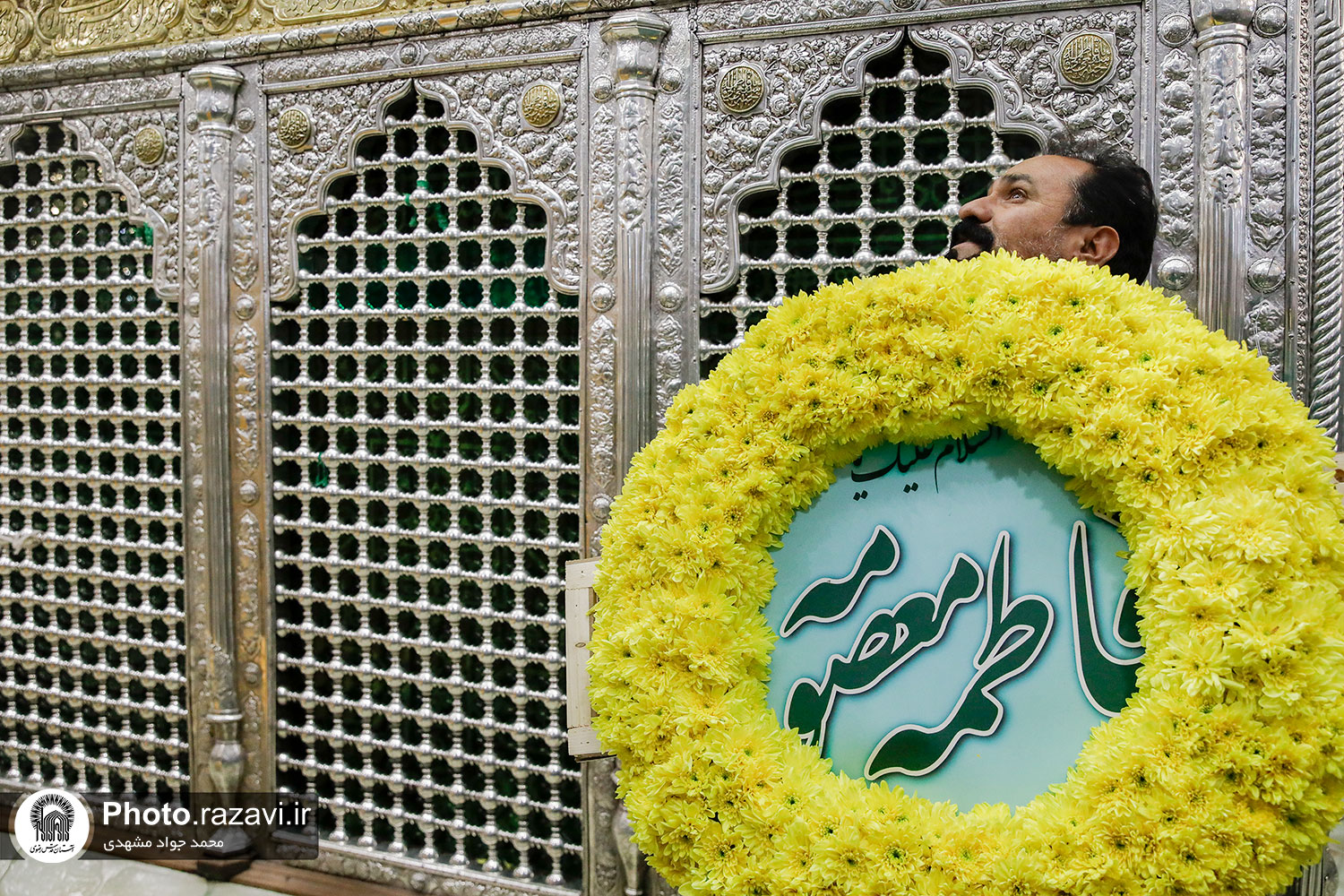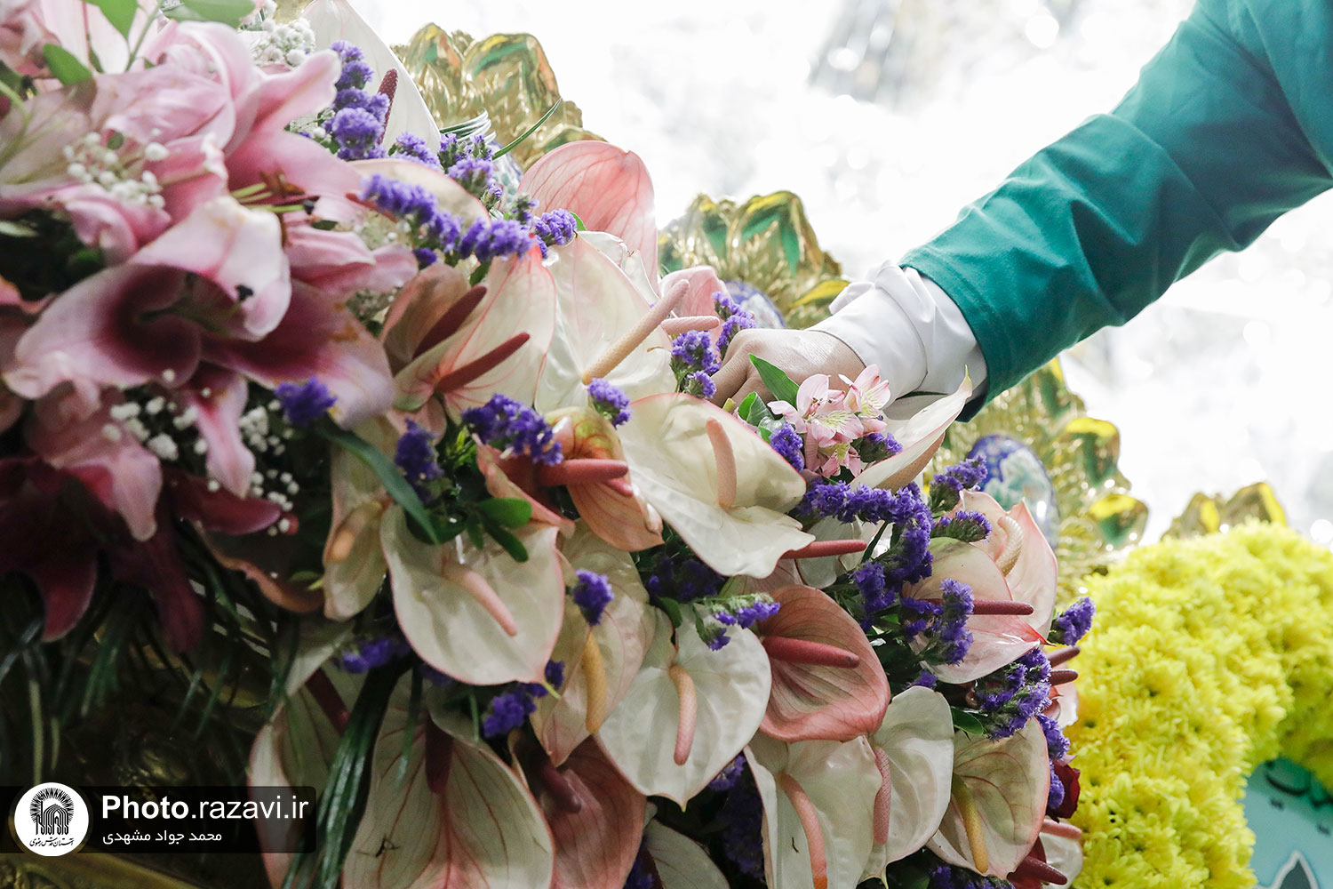 ضریح مطهر حضرت معصومه سلام الله علیها با همکاری خدام حرم مطهر رضوی در آستانه دهه کرامت و سالروز ولادت بانوی کرامت گل آرایی شد.