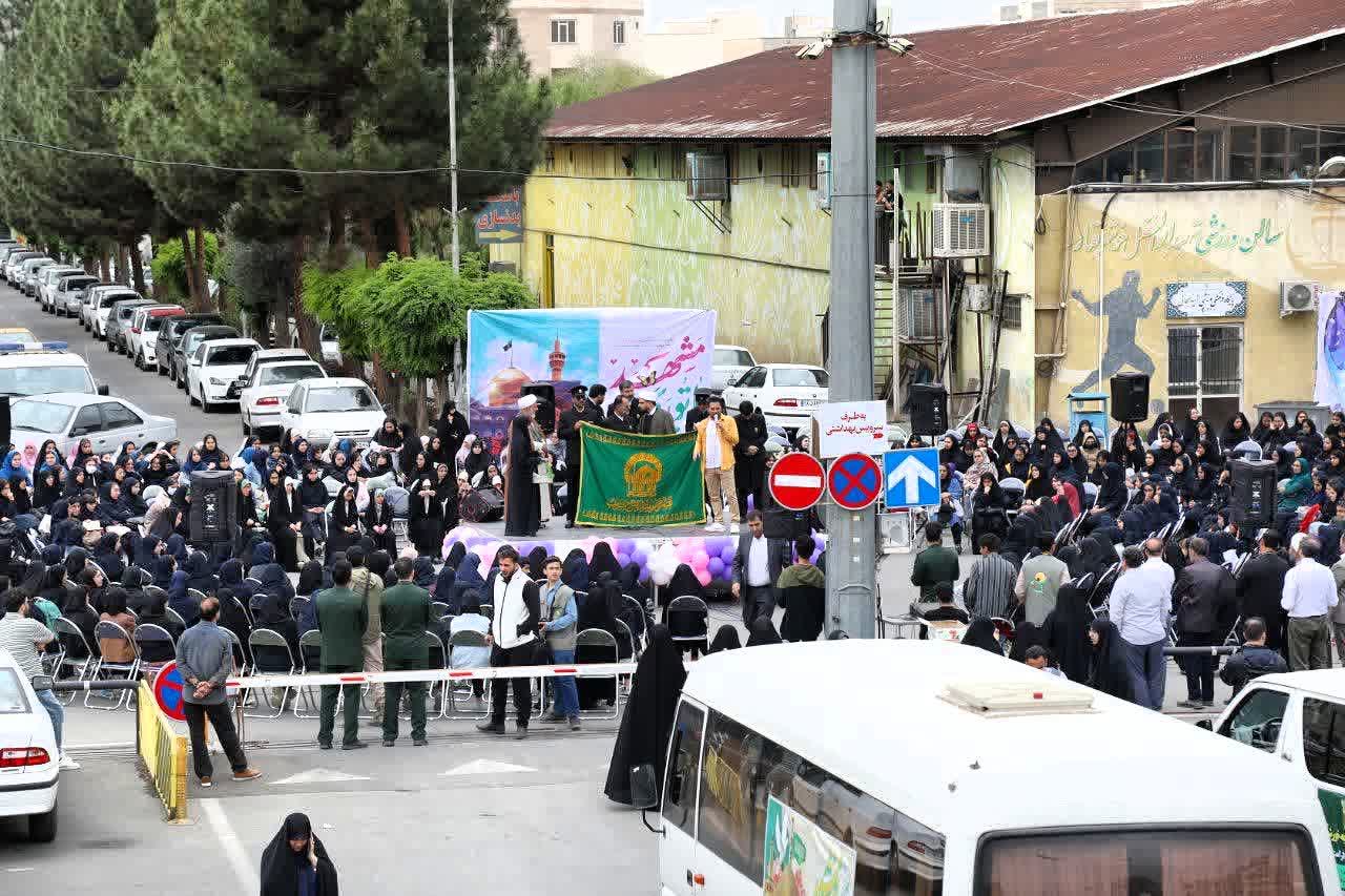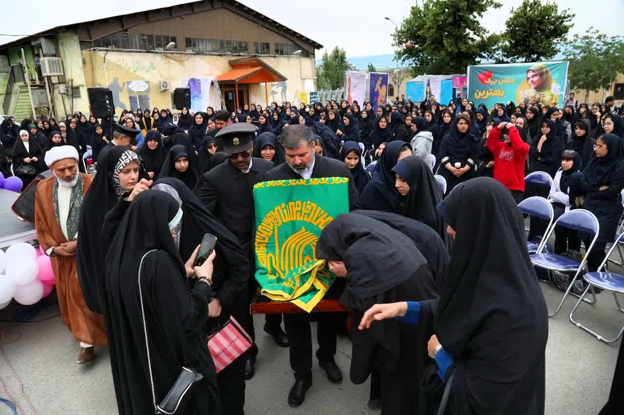 جلوه ویژه حضور کاروان سفیر نور با پرچم امام رضا (ع) در دبیرستان حضرت معصومه (س) طبس