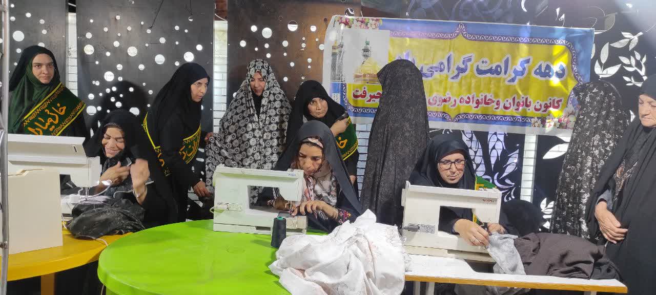 وی افزود: در این برنامه که با برپایی رواق رضوی و ایجاد فضای معنوی همراه بود، چهار نفر از خیاطان با نیت نذر خدمت به‌صورت جهادی اقدام به دوخت و برش ۵۷ قواره چادر رایگان برای بانوان نمودند.
