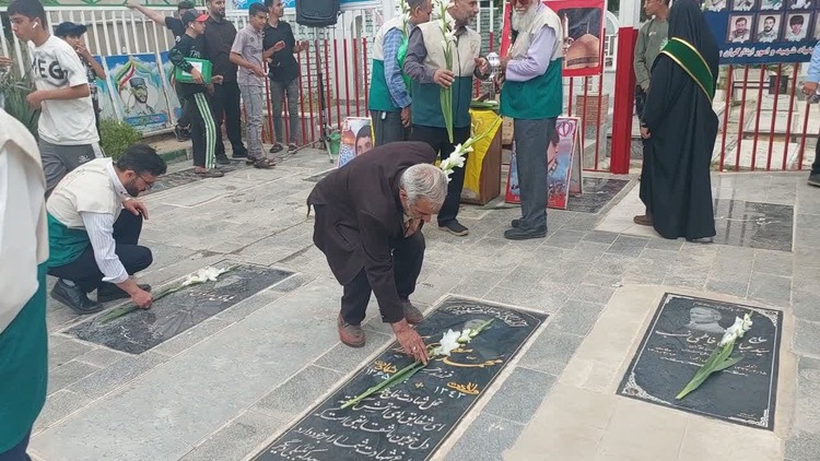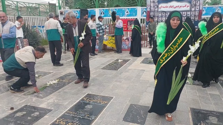 در این مراسم که با حضور پرشور خادمیاران رضوی و اقشار مختلف مردم برگزار شد، قبور مطهر شهدا توسط سفیران امام مهربانی غبارروبی و عطرافشانی شد و حضار با قرائت فاتحه و عطرافشانی، یاد و خاطره شهدا را گرامی داشتند.