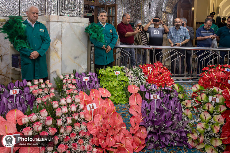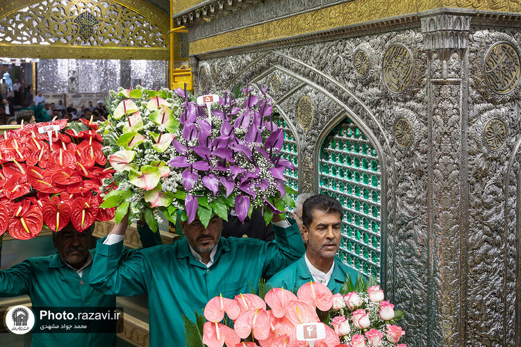 به مناسبت ایام میلاد امام رضا علیهالسلام و دهه کرامت، ضریح مطهر رضوی، روز یکشنبه 14 اردیبهشت 1404 با گلهای اهدایی تولیدکنندگان و ناذران گل از اقصی نقاط کشور گل آرایی شد.