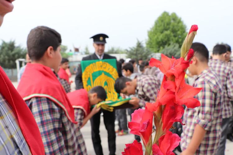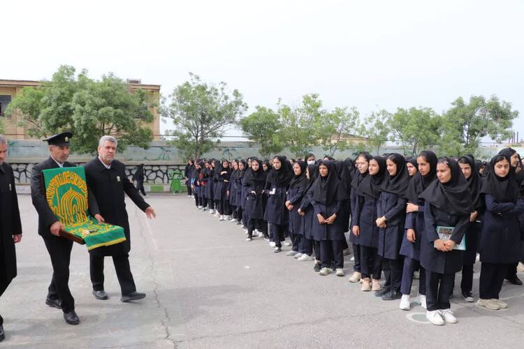 جلوه ویژه حضور کاروان سفیر نور با پرچم امام رضا (ع) در دبیرستان حضرت معصومه (س) طبس