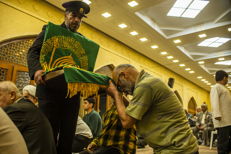 غبارروبی و گلباران مزار شهدای آرمیده در آستان حضرت حسین بن موسی الکاظم(ع)