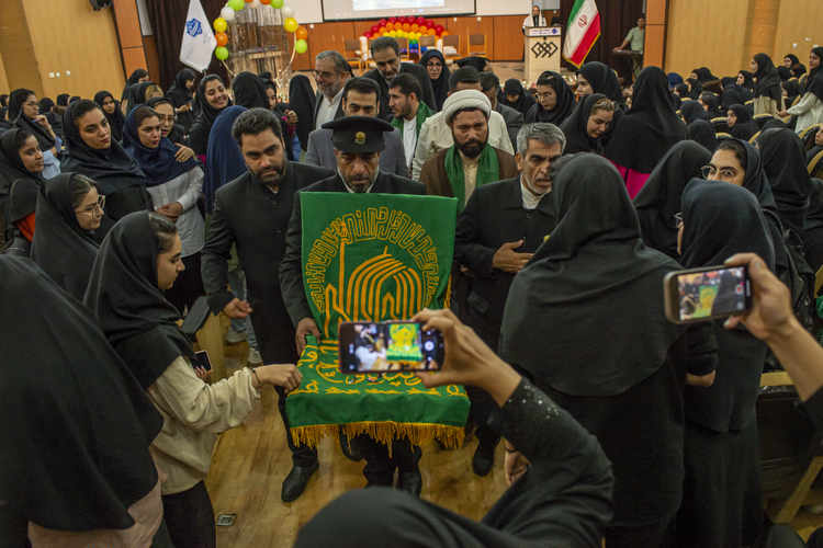 جلوه ویژه حضور کاروان سفیر نور با پرچم امام رضا (ع) در دبیرستان حضرت معصومه (س) طبس