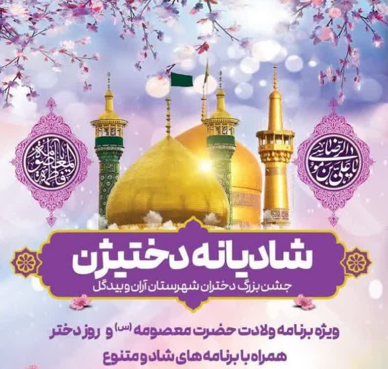 میثم استادیان معاون فرهنگی دبیرخانه کانون‌های خدمت رضوی آران و بیدگل با اشاره به برگزاری جشن شادیانه دختیژن در گفتگو با آستان نیوز اظهار داشت: به همت خادمیاران و یاوران کانون خدمت رضوی تخصصی بانوان و خانواده آران و بیدگل وبا همکاری دیگر کانون‌ها این جشن با برنامه‌های متنوعی همچون حضور یکی از مجریان شبکه پویا، اجرای گروه سرود گل نرگس ۳۱۳ از روستای محمدآباد مرکزی و قرعه‌کشی کمک‌هزینه مشهد مقدس برای هشت نفر از دختران همراه بود.