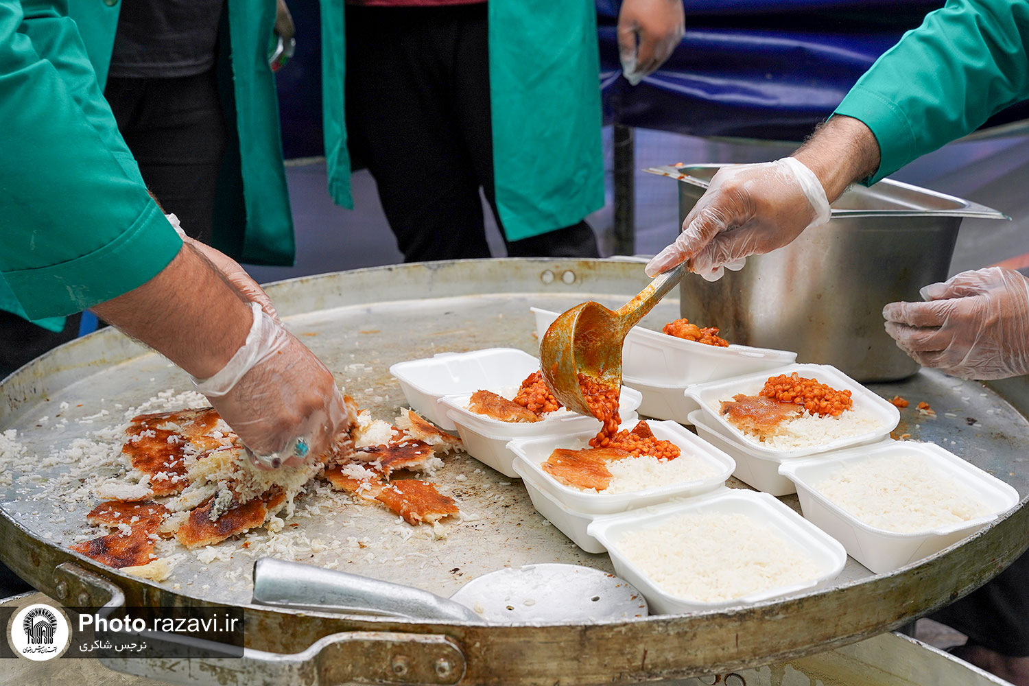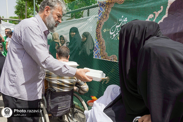 توزیع غذا در مواکب خدمت رسان به زائرین امام رضا علیهالسلام در دهه کرامت