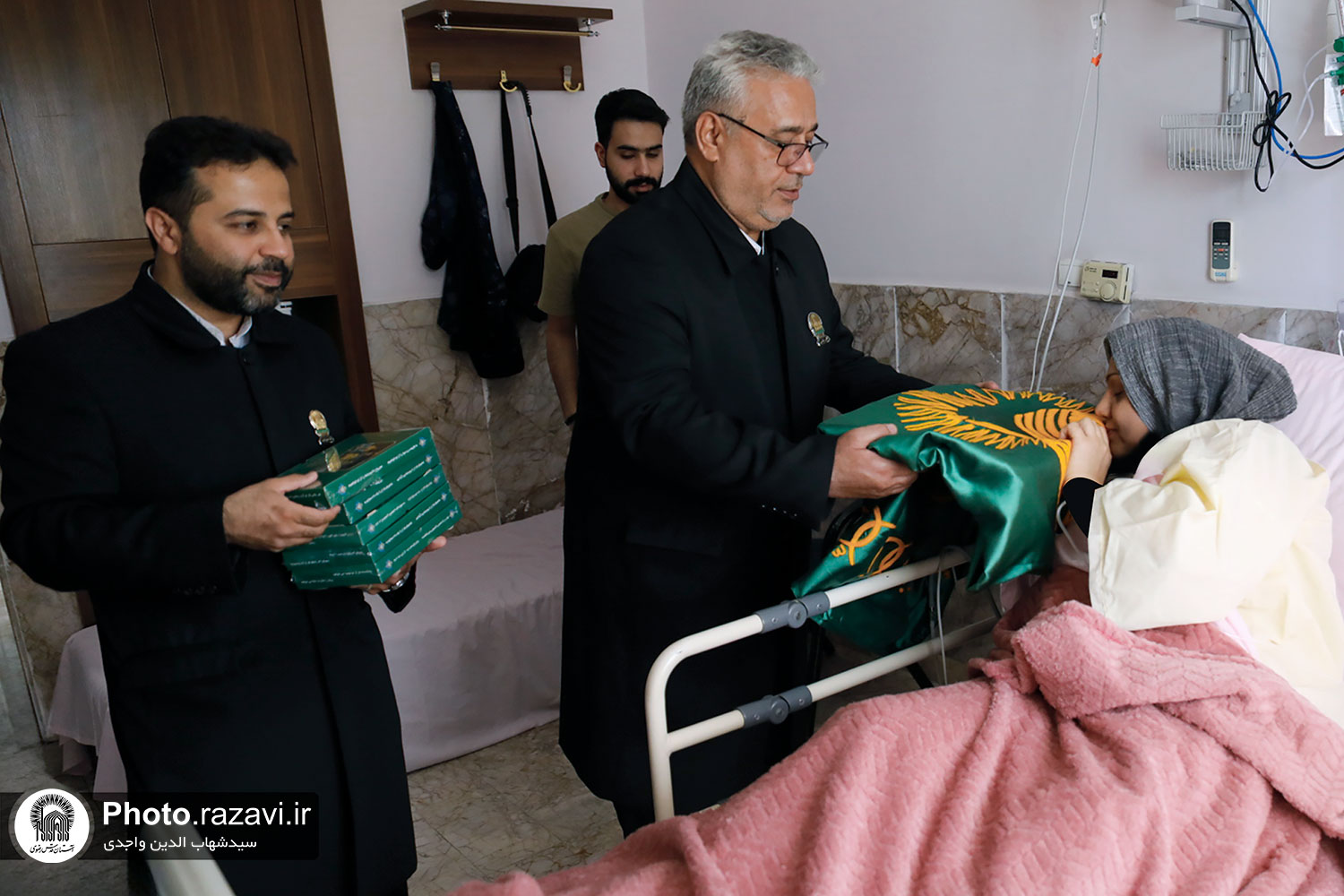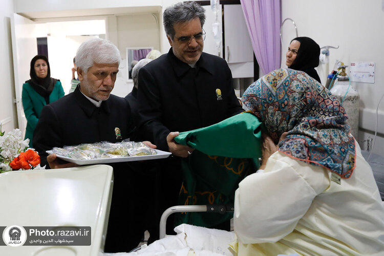 جمعی از کفشداران افتخاری حرم مطهر رضوی، روز جمعه 19 اردیبهشت 1404 به مناسبت میلاد امام رضا علیهالسلام با حضور در بیمارستانهای مشهد، از بیماران با گل و هدیه متبرک عیادت کردند.