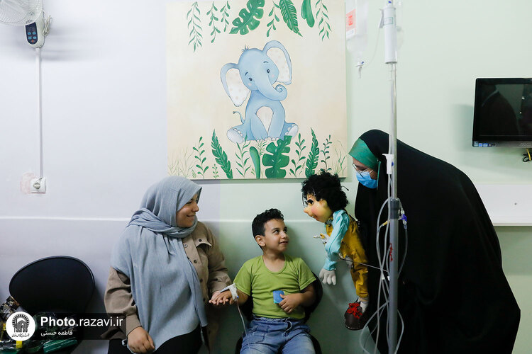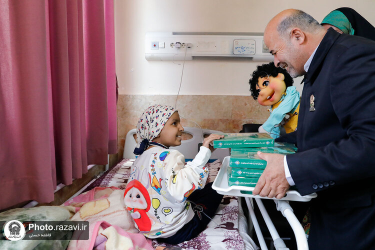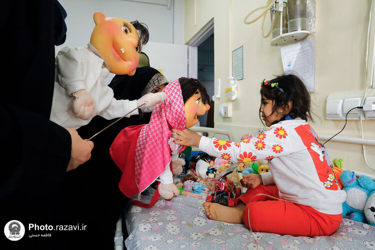 جمعی از خدام حرم مطهر رضوی، روز جمعه 19 اردیبهشت 1404 به مناسبت میلاد امام رضا علیهالسلام با حضور در بخش اطفال بیمارستان دکتر شیخ مشهد، ضمن اجرای نمایش عروسکی برای کودکان، از بیماران با گل و هدیه متبرک عیادت کردند.
