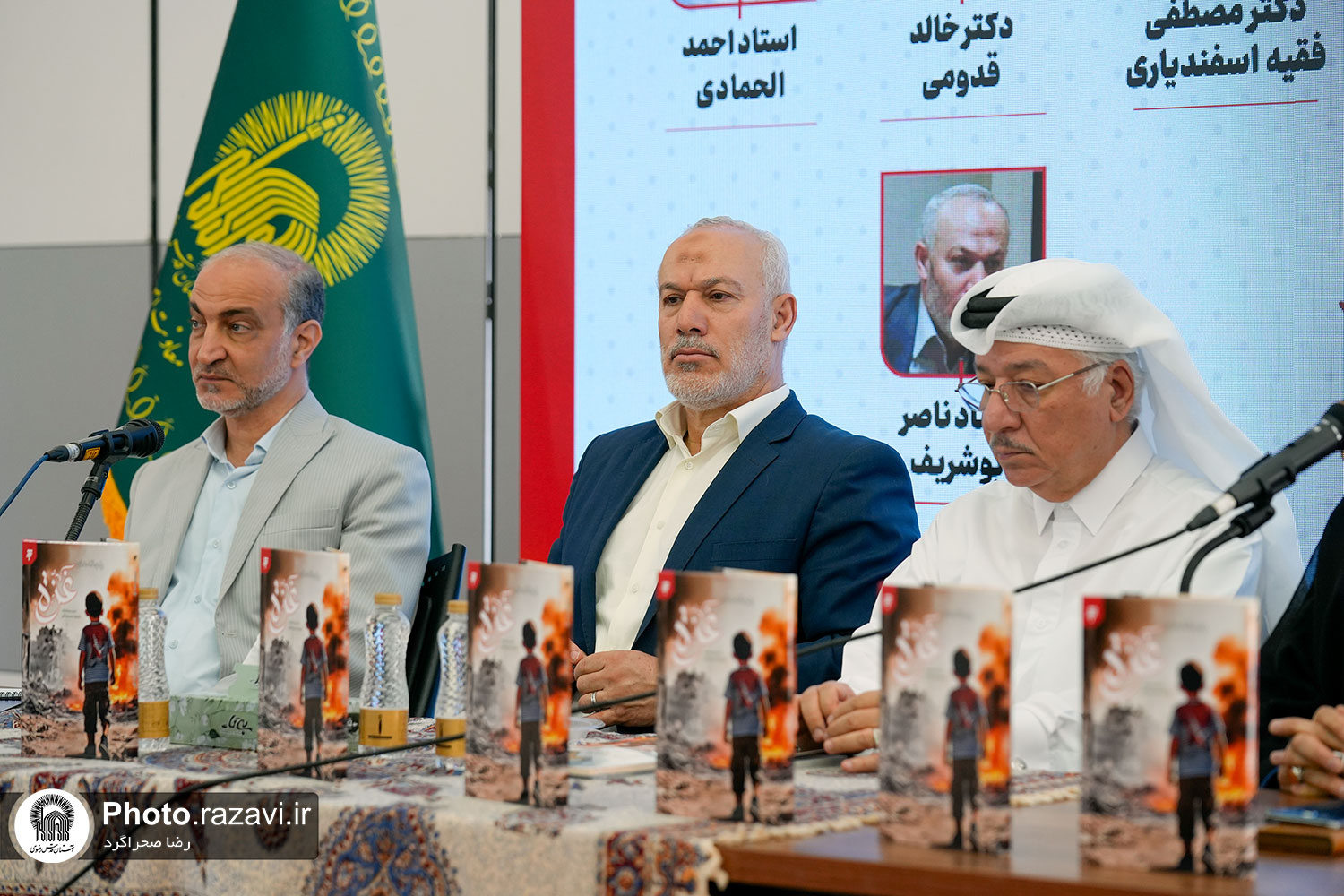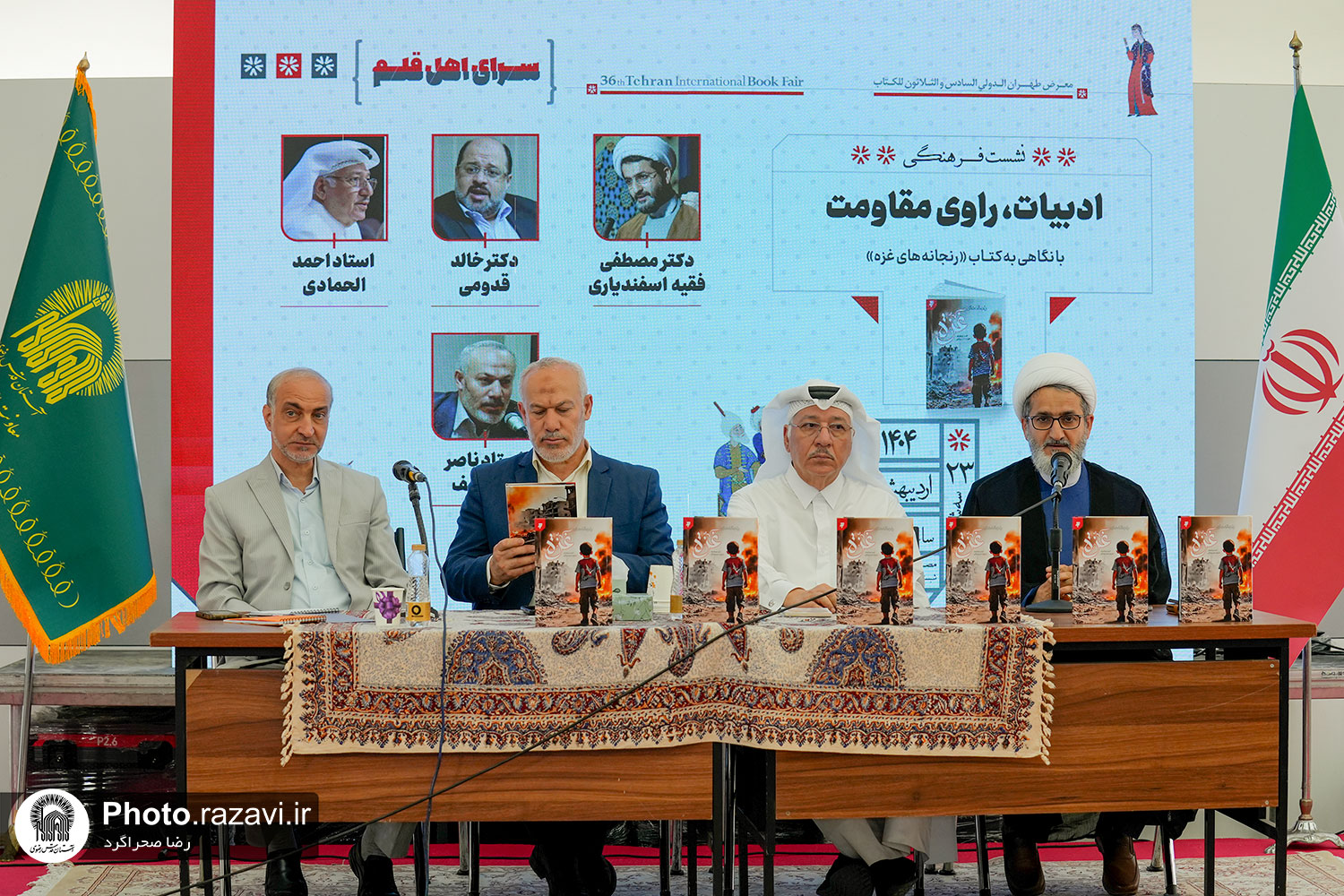 نشست فرهنگی ادبیات، راوی مقاومت با نگاهی به کتاب رنجانه‌های غزه، روز سه‌شنبه 23 اردیبهشت 1404 با حضور حجت‌الاسلام مصطفی فقیه اسفندیاری؛ معاون بین‌الملل آستان قدس رضوی، دکتر ناصر ابوشریف؛ نماینده جنبش مقاومت اسلامی حماس در ایران و استاد احمد الحمادی؛ مدیر انتشارات «دار نبراس قطر» در حاشیه سی و ششمین نمایشگاه بین‌المللی کتاب تهران برگزار شد.