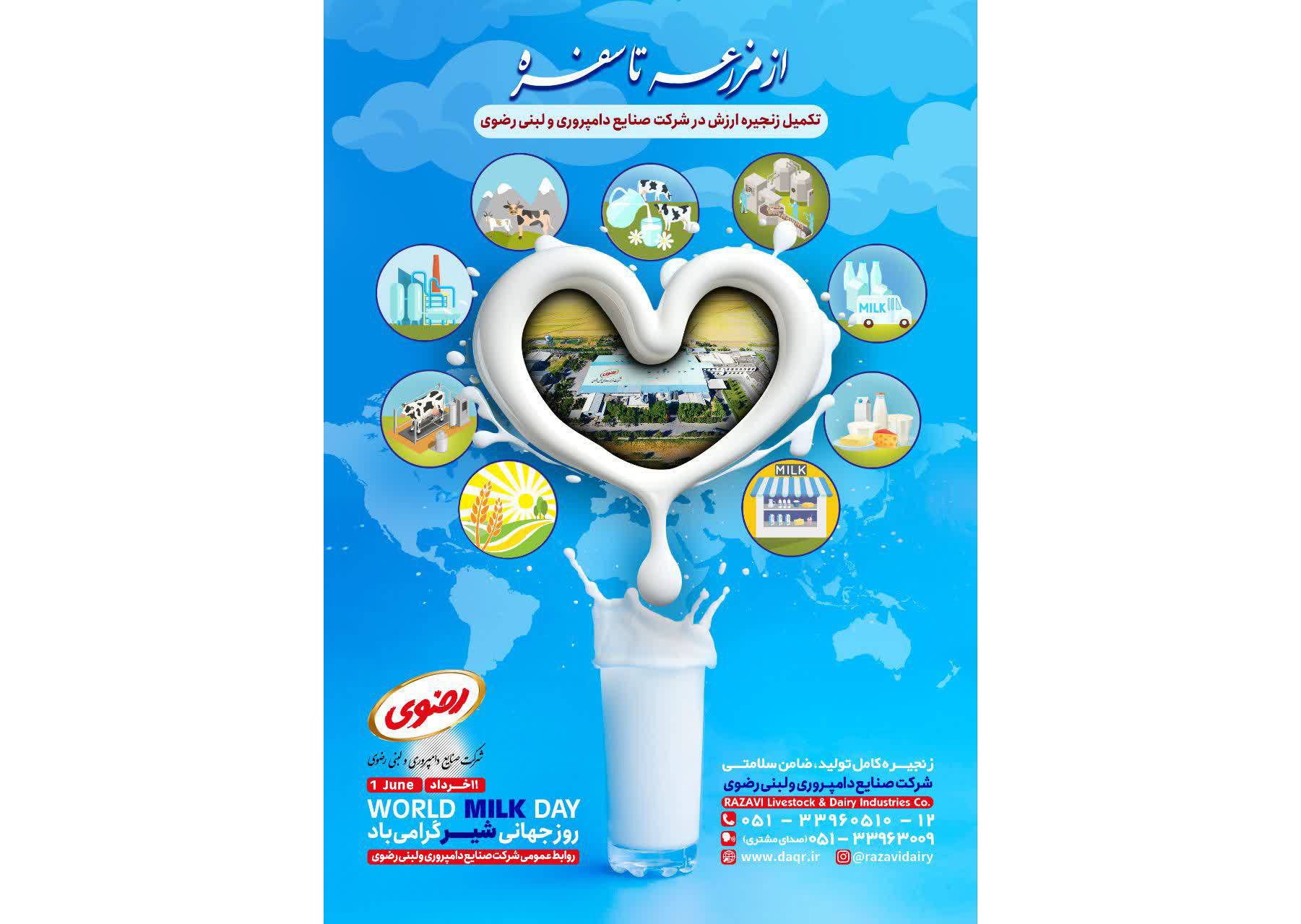 در واقع،در شرکت صنایع دامپروری و لبنی رضوی تلاش کرده‌ایم ، با ارتقای استانداردهای تولید، به این هدف جهانی، کمک کنیم.