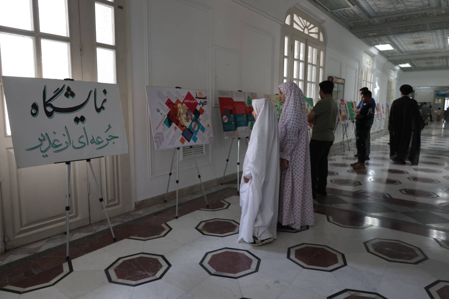در بخش نخست نمایشگاه جرعهای از غدیر، 20 تابلو با محوریت ایام غدیریه در دو قسمت در معرض دید مراجعان کتابخانه گذاشته شده است.