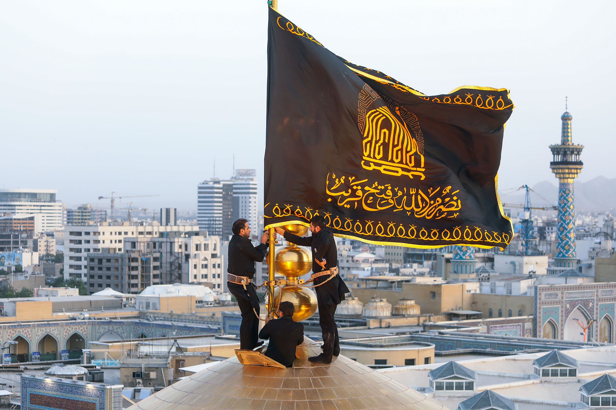 عکس با کیفیت : پرچم عزا گنبد حرم مطهر رضوی