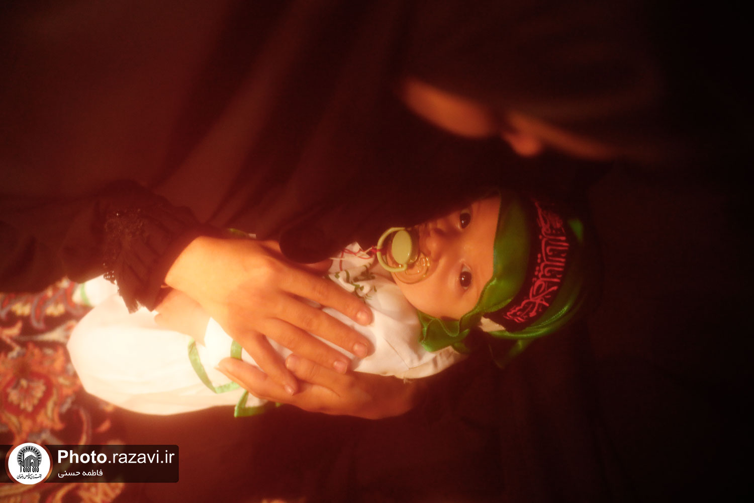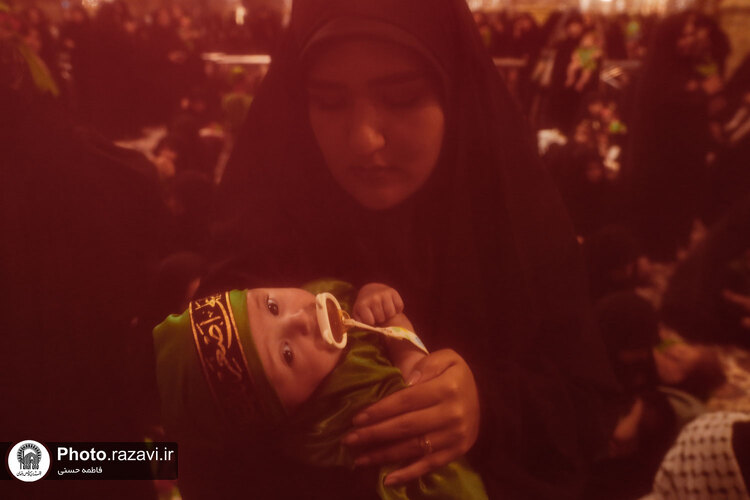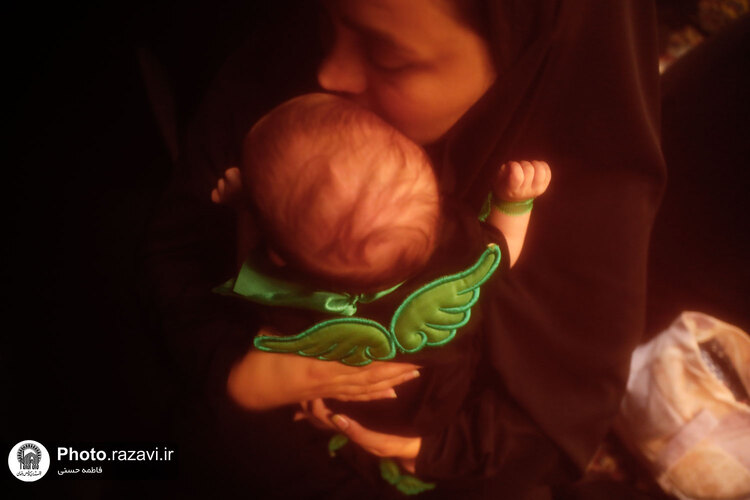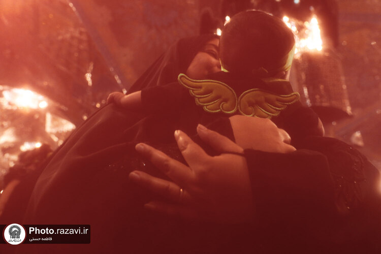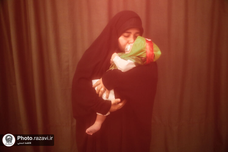 آن رنگ قرمزی که روی لنز سایه میافکند، مثل پردهای از خون پاک شهیدان است که با هر قطرهاش به راه امام حسین علیهالسلام جان بخشیدند و آن کودکی که در آغوش مادر آرام گرفته همچون شعلهای کوچک از مشعل بزرگ عشق و مقاومت است و نانوشتههایی از رشادت، امید و باور به راهی سرخ، اما لبریز از نور است. این آغوش، قصهی مهربانی و قربانی است؛ سرآغازی بر راهی که با قدمهای کوچک اما استوار به سوی اوج عشق و شهادت میرود.
