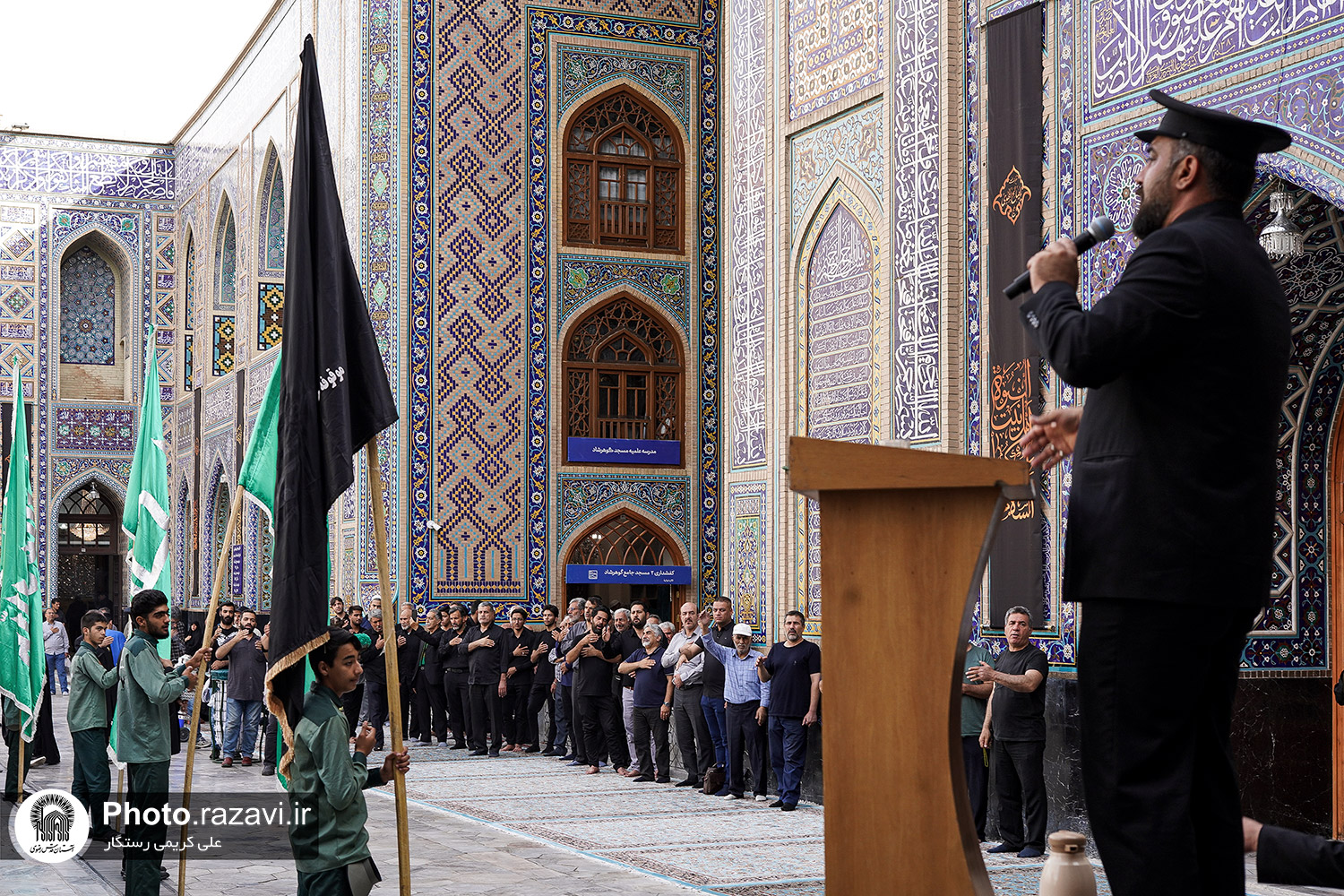 مراسم عزاداری هیئت عالم ال محمد علیه و علیهمالسلام، روز شنبه 14 تیرماه 1404 با حضور خدام و زائران امام رضا علیهالسلام از باب الکاظم حرم مطهر رضوی به سمت صحن گوهرشاد برگزار شد.