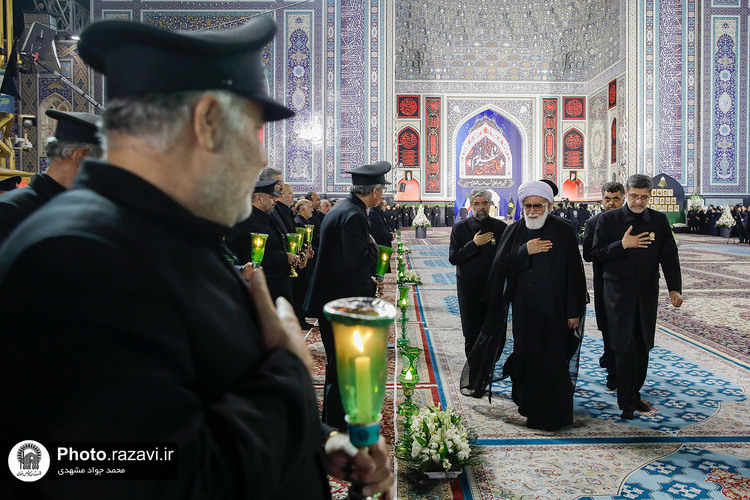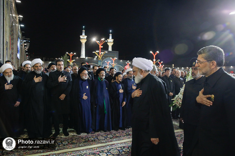 آئین خطبه خوانی شب عاشورا، همزمان با شب عاشورای حسینی، شامگاه شنبه 14 تیرماه 1404 با حضور آیت الله احمد مروی؛ تولیت آستان قدس رضوی و خادمان و زائران بارگاه ملکوتی امام هشتم در صحن پیامبر اعظم حرم امام رضا علیهالسلام برگزار شد.