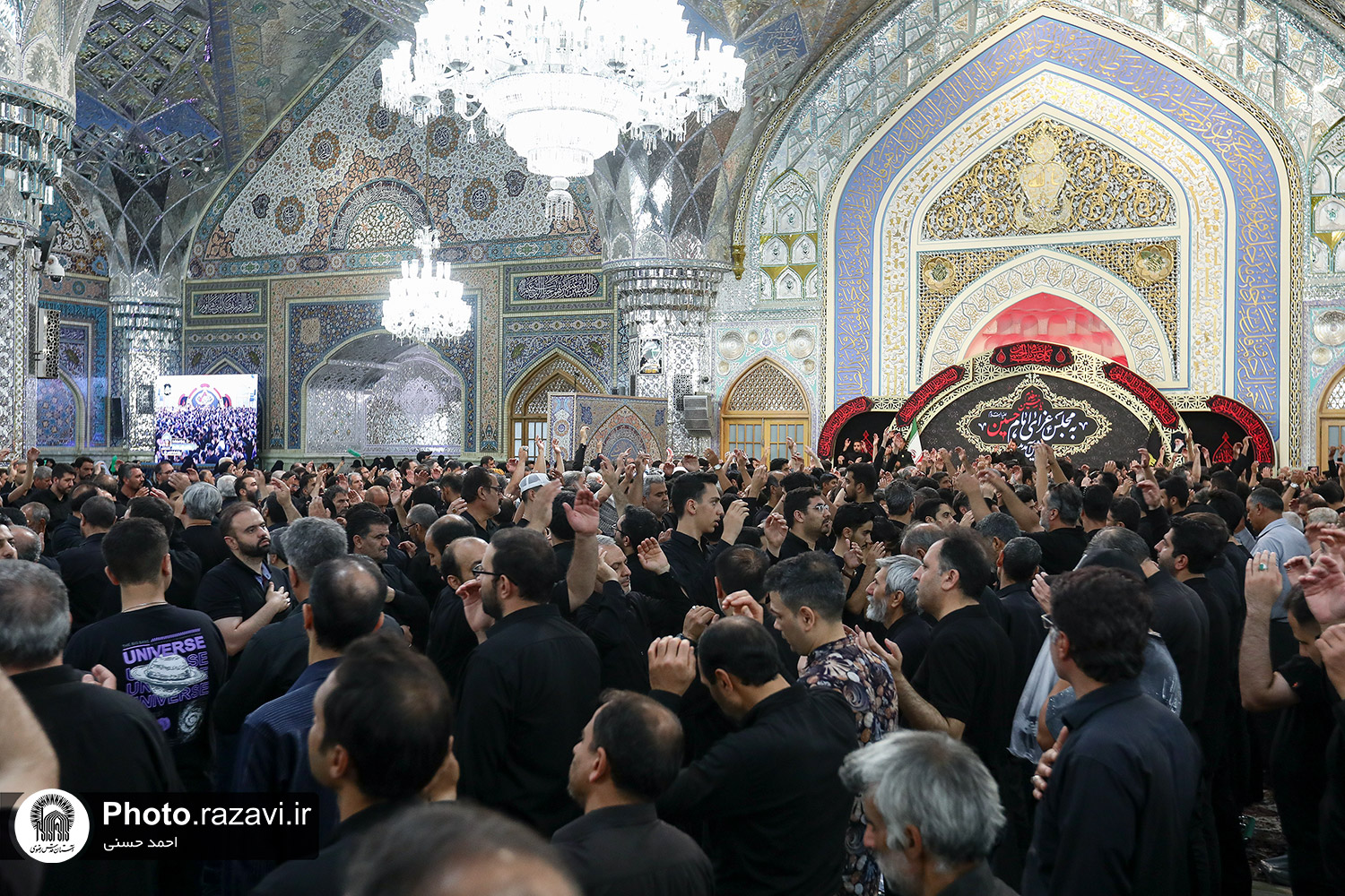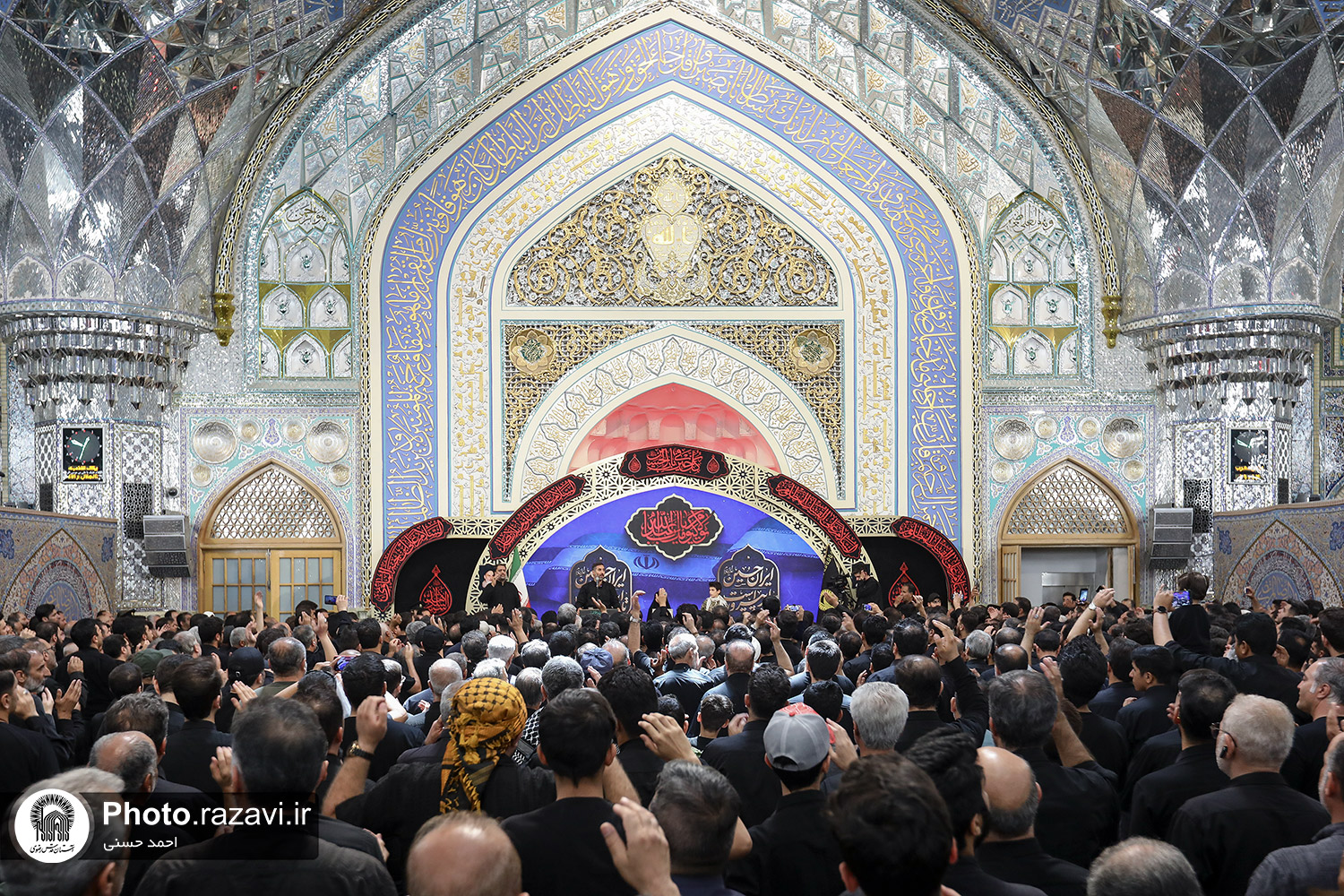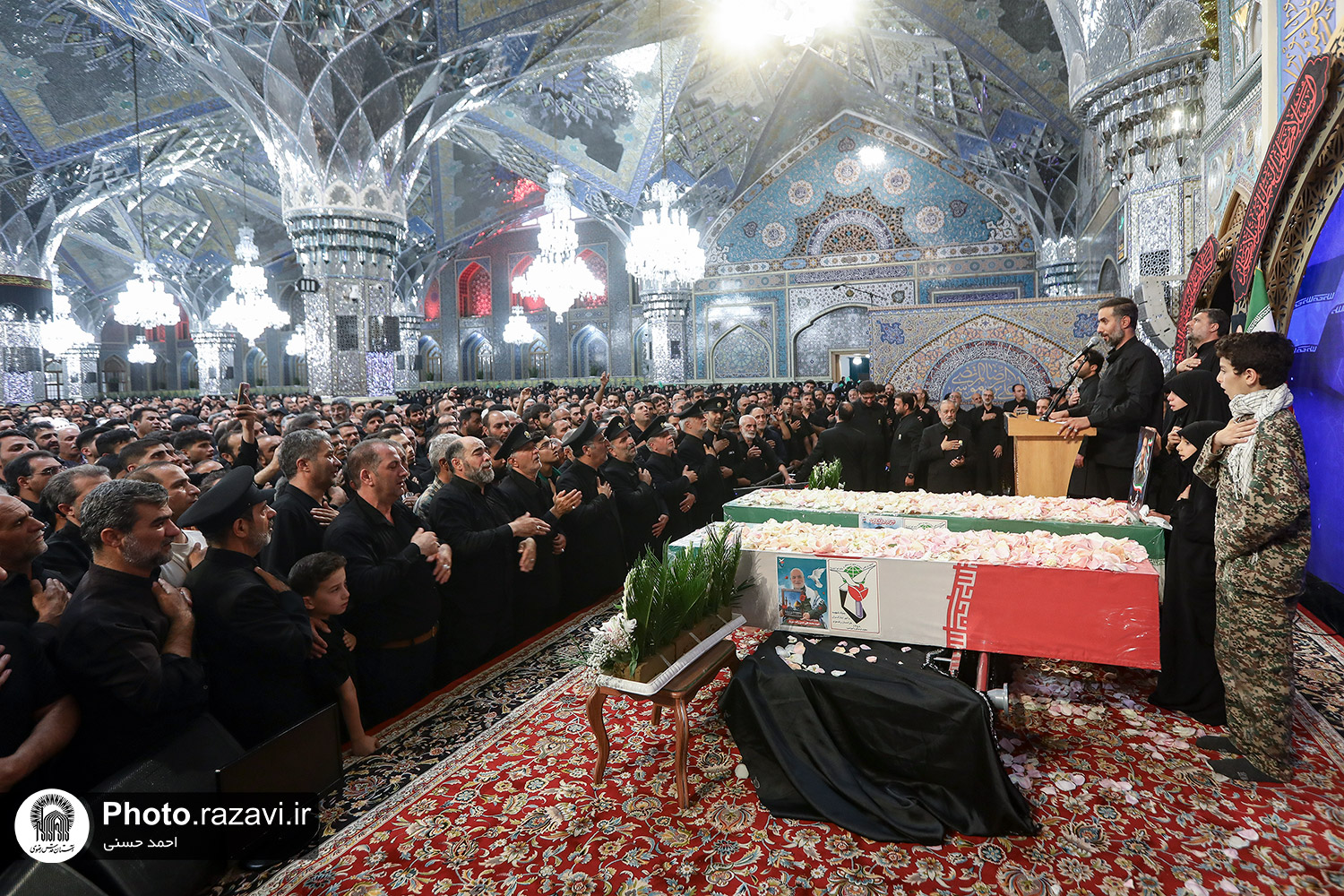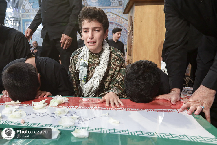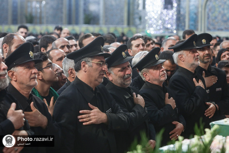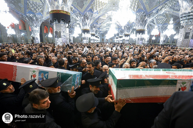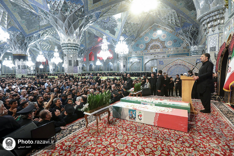 اجتماع بزرگ عاشوراییان و مراسم وداع با شهید مرتضی میثمی از شهدای حمله رژیم صهیونیستی و شهید محمدعلی حسنزاده سبزوار جانباز ۷۰ درصد دفاع مقدس، روز یکشنبه ۱۵ تیرماه ۱۴۰۴ با حضور پرشور زائران و مجاوران بارگاه منور رضوی در رواق امام خمینی(ره) حرم مطهر امام رضا علیهالسلام برگزار شد.