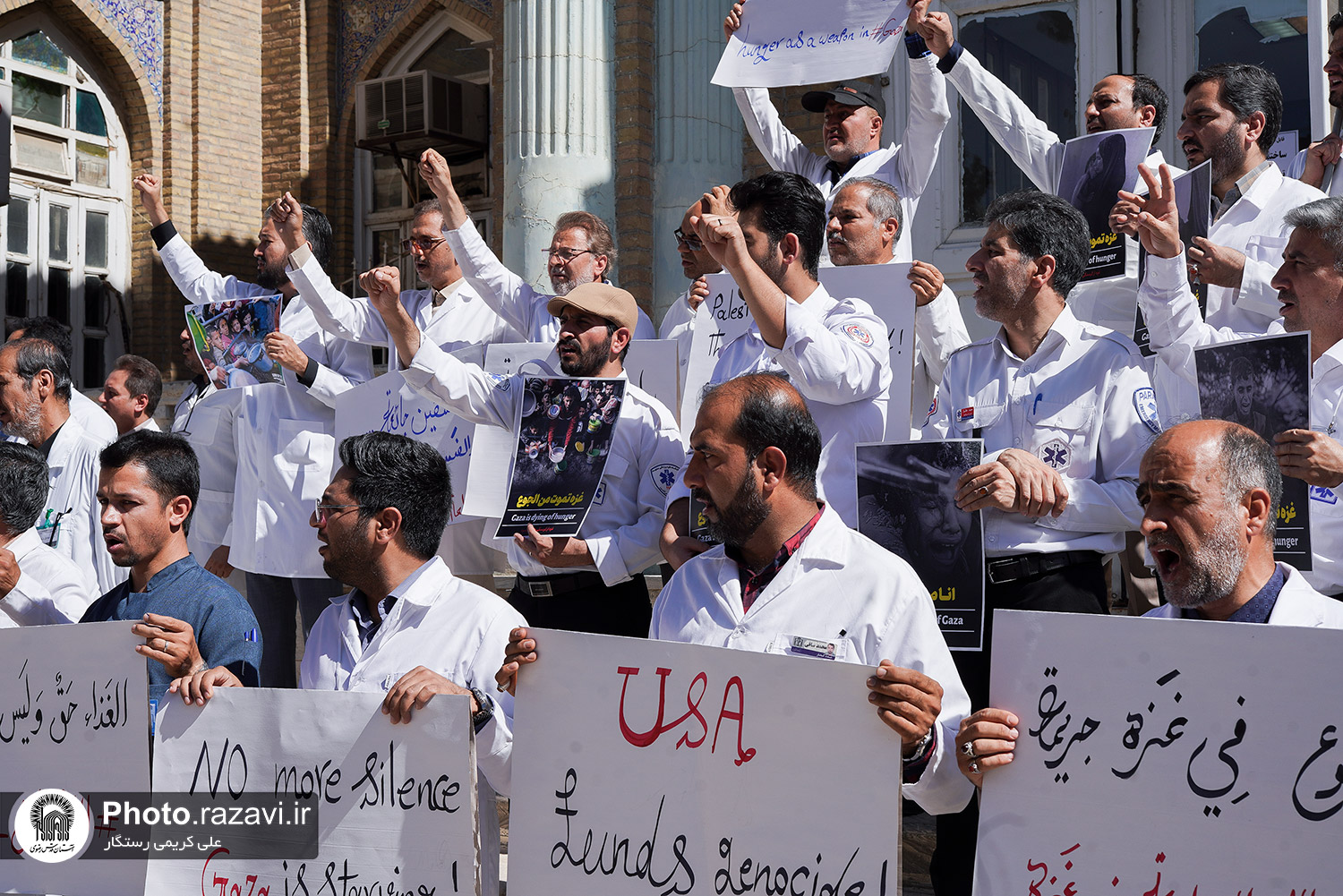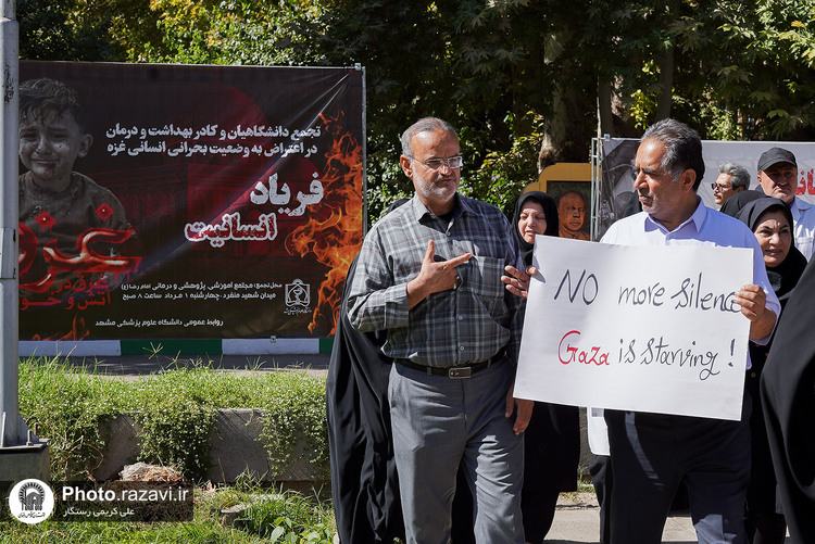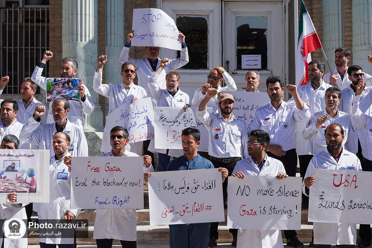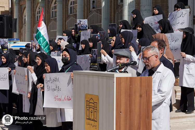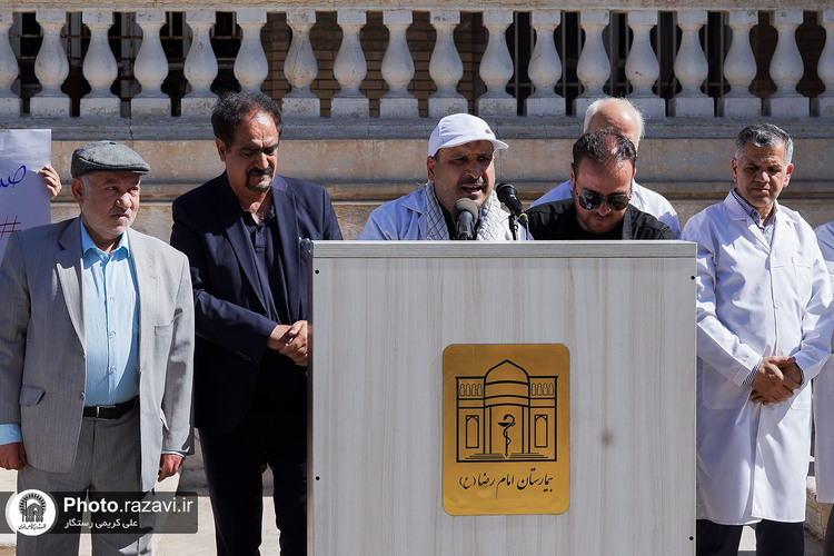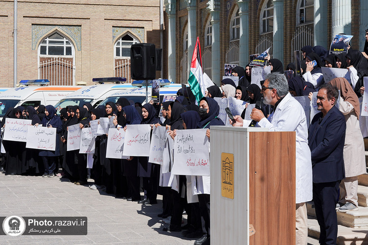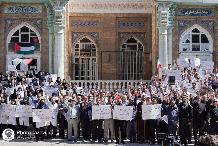 تجمع کادر بهداشت و درمان استان خراسان رضوی در اعتراض به وضعیت بحرانی انسانی در غزه با عنوان «فریاد انسانیت» روز چهارشنبه 1 مرداد 1404 در بیمارستان امام رضا علیهالسلام مشهد برگزار شد.