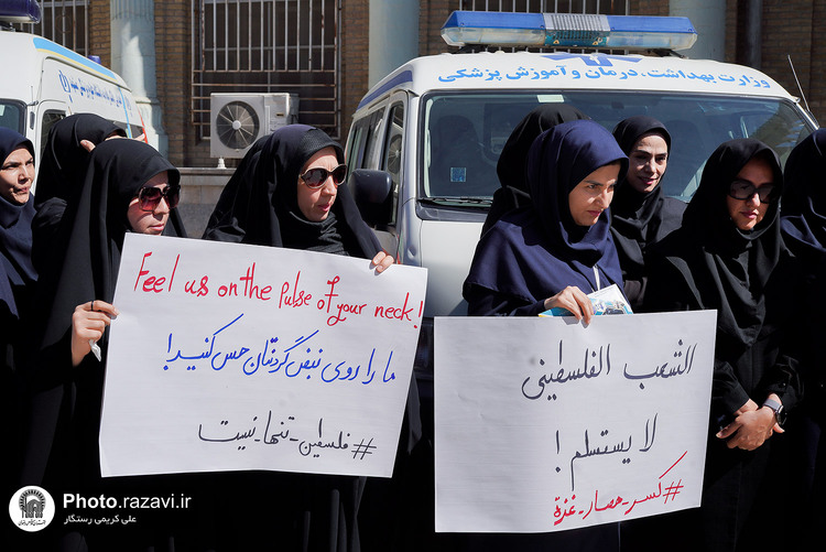 تجمع کادر بهداشت و درمان در اعتراض به وضعیت بحرانی انسانی در غزه