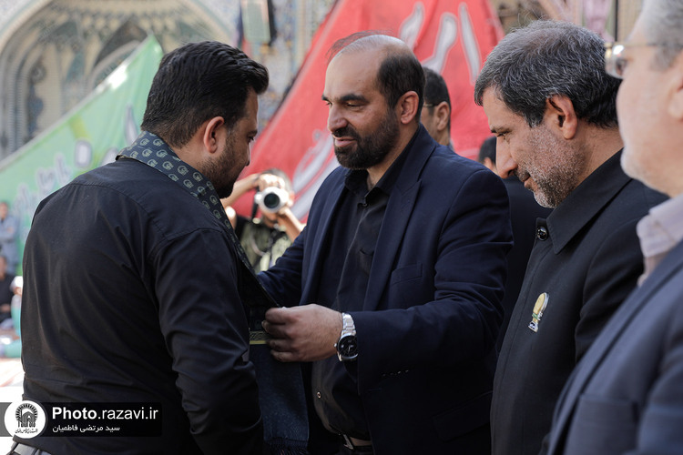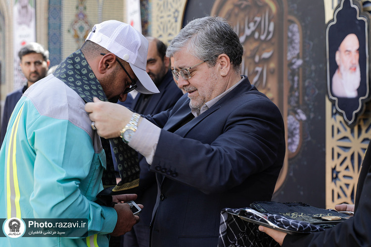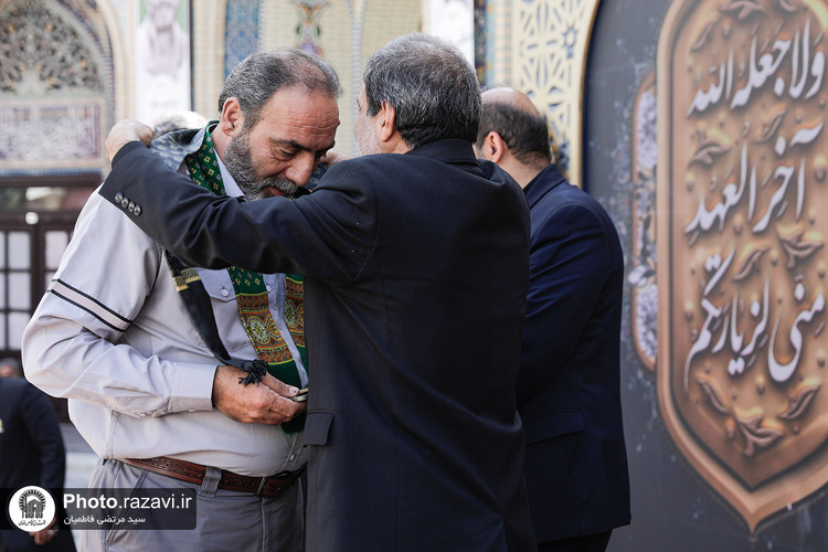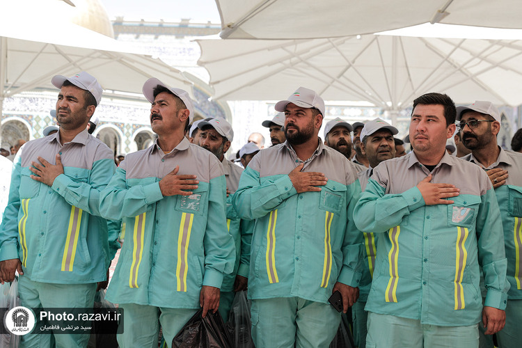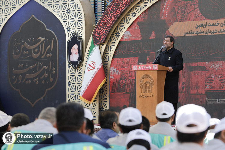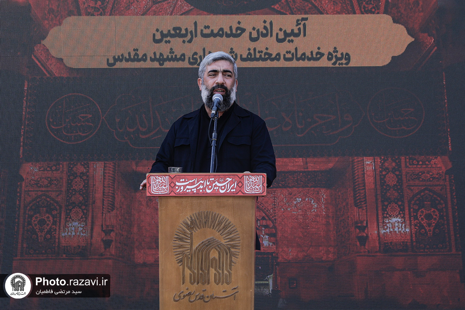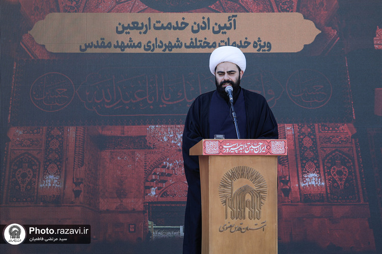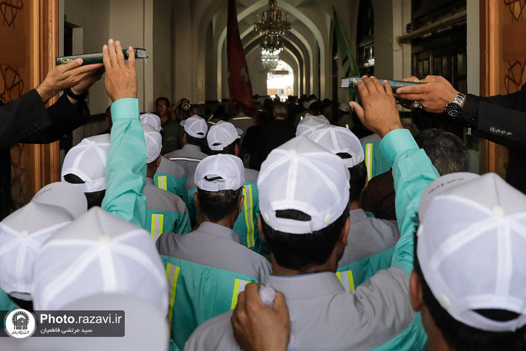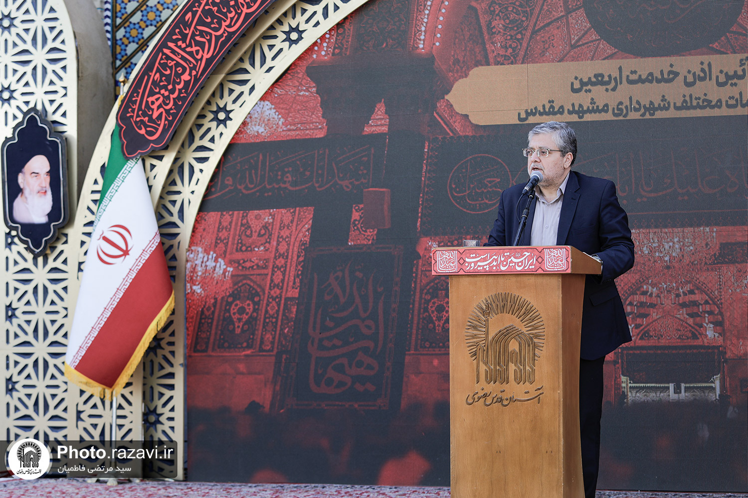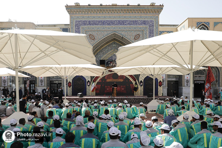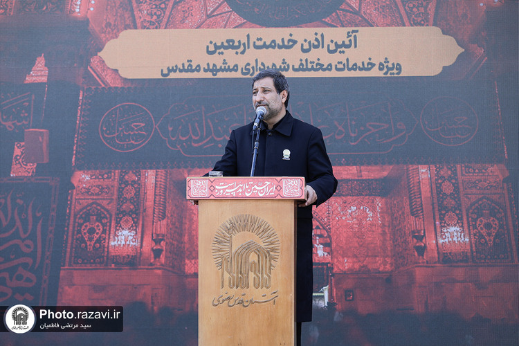 آیین اذن خدمت خادمین شهری مشهد از امام هشتم در جهت خدمت به زوار سیدالشهدا علیه السلام در ایام اربعین حسینی، روز دوشنبه ۶ تیرماه ۱۴۰۴ با سخنرانی محسن داوری؛ معاون مدیر عالی حرم مطهر و محمدرضا قلندر شریف؛ شهردار مشهد در صحن قدس حرم مطهر امام رضا علیهالسلام برگزار شد.