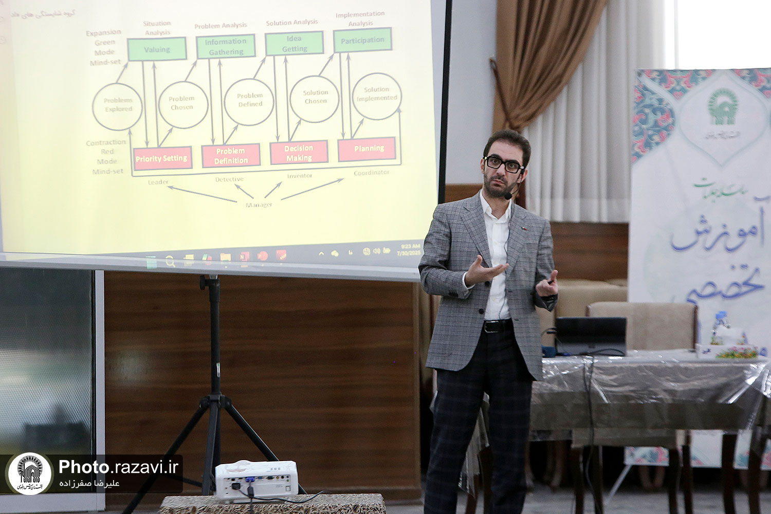 دومین همایش آموزشی مدیران ارشد و میانی آستان قدس رضوی در سال جاری، با محوریت شایستگی تصمیمگیری، روز چهارشنبه 8 مرداد 1404 با حضور محمد جواد ثابت؛ عضوهیئت علمی دانشگاه تهران به همت مدیریت توانمندسازی و آموزش منابع انسانی آستان قدس رضوی در مجتمع رفاهی کارکنان برگزار شد.