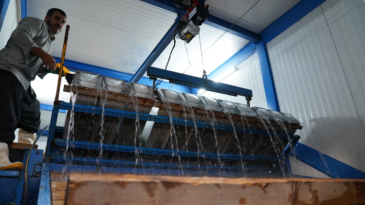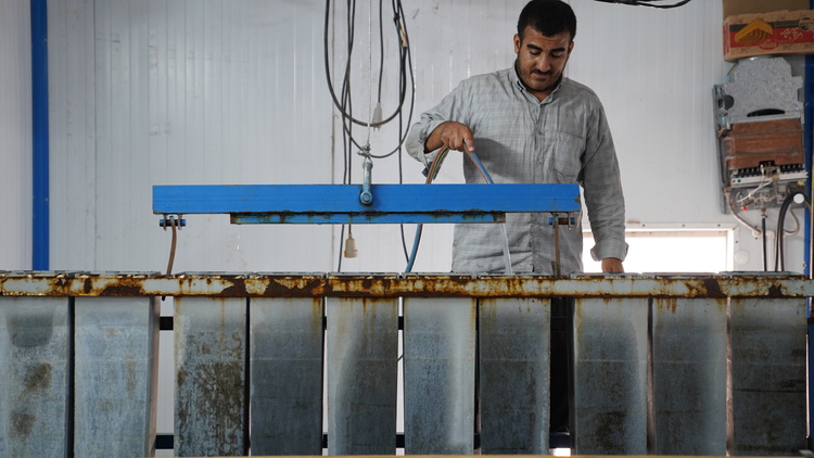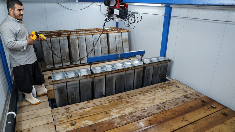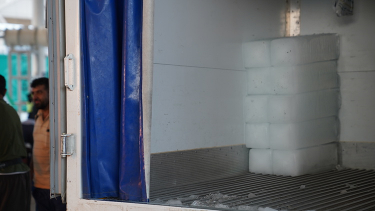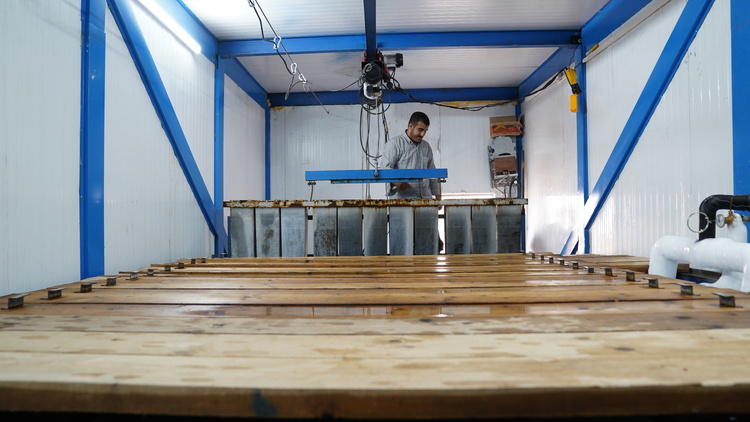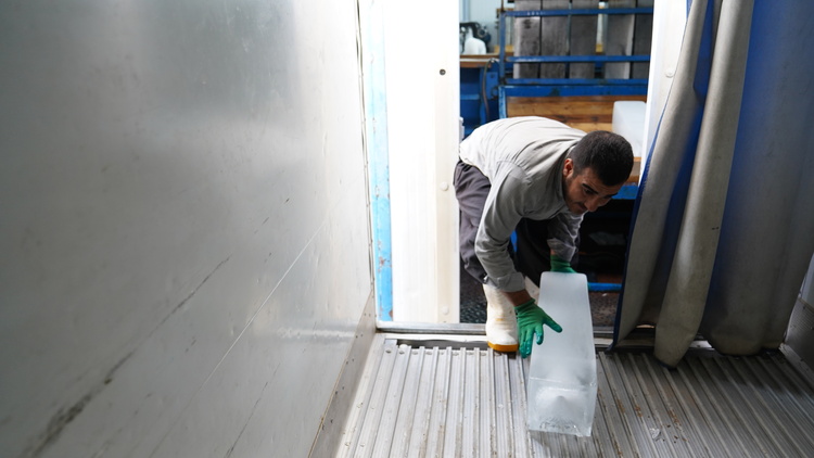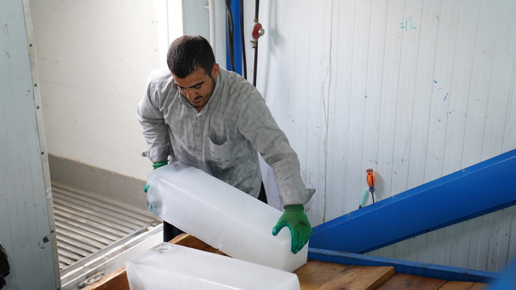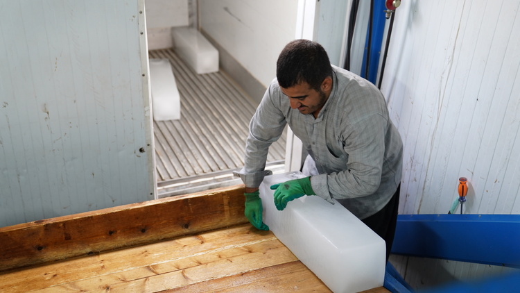 تولید روزانه ۵۰۰ قالب یخ برای زائران اربعین در مرز مهران در دو شیف کاری/ گزارش تصویری
