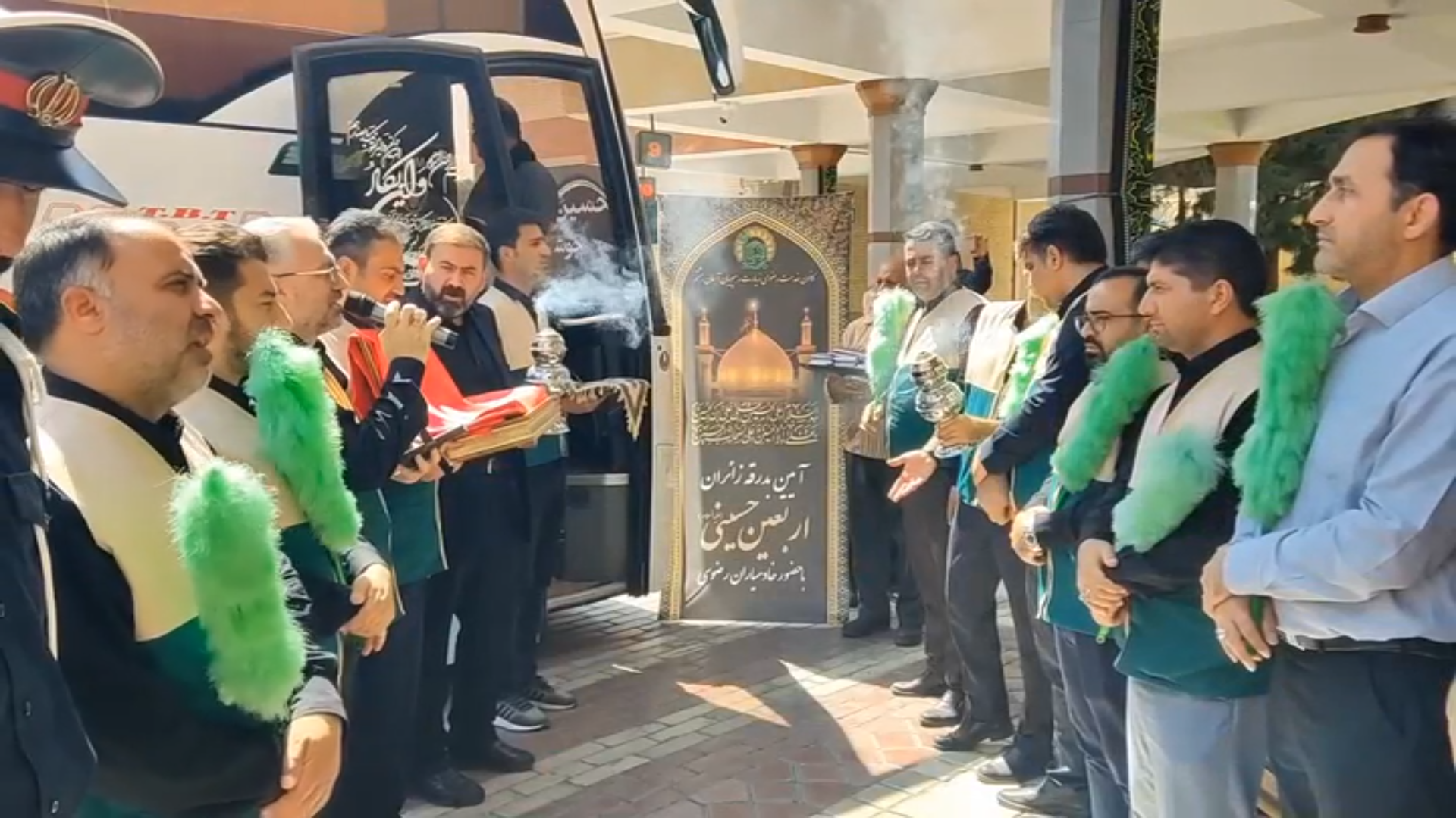آیین بدرقه زائران اربعین و اهدای بستههای فرهنگی در پایانه کاوه اصفهان/ فیلم