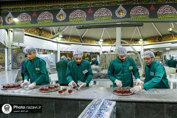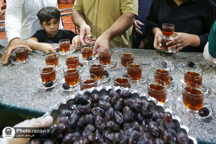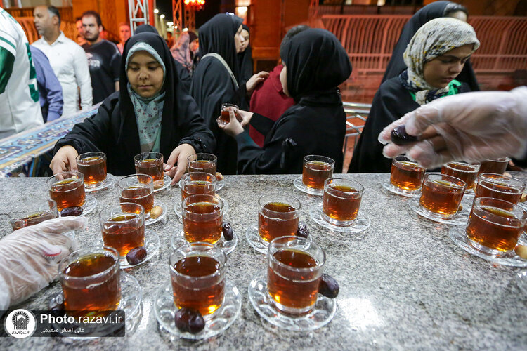به مناسبت ایام پایانی ماه صفر و شهادت امام رضا علیهالسلام، خادمیاران شهرستان بم استان کرمان با توزیع 4هزار کیلو خرما و چای، از زائرین امام هشتم در چایخانه صحن غدیر حرم مطهر رضوی پذیرایی کردند.