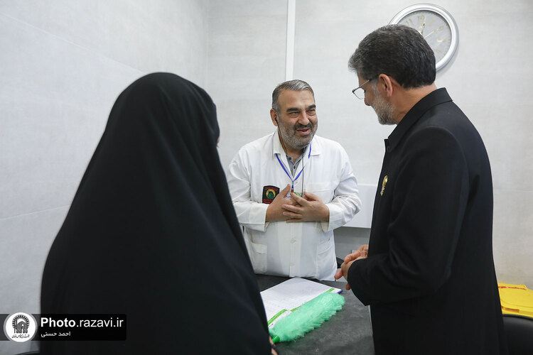 مصطفی فیضی؛ قائم مقام تولیت آستان قدس رضوی، روز پنجشنبه 30 مرداد 1404 با حضور در پایگاه اورژانس صحن امام حسن مجتبی علیهالسلام و مواکب اطراف حرم مطهر رضوی از روند خدمترسانی در این مواکب بازدید کرد.