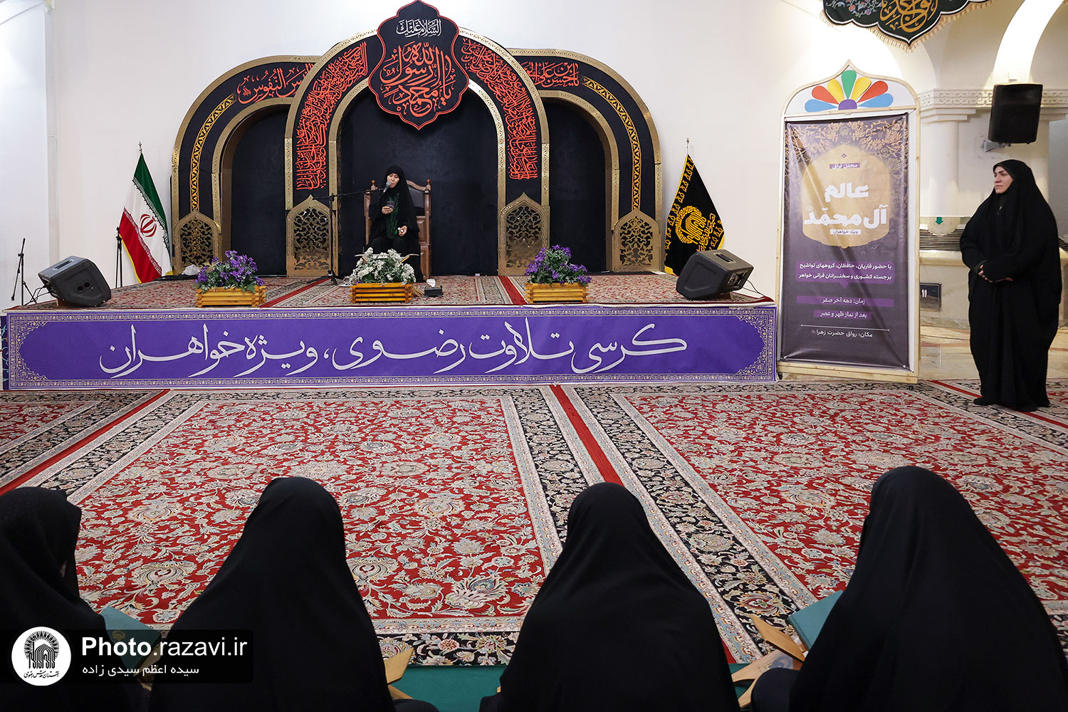 به مناسبت ایام پایانی ماه صفر، محفل قرآنی عالم آل محمد علیهالسلام ویژه خواهران، با حضور قاریان، حافظان و سخنرانان خواهر در رواق حضرت زهرا سلام الله علیها برگزار شد.