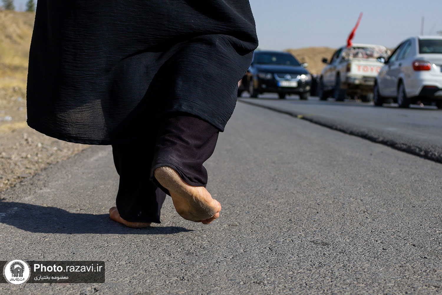 قدم به قدم هرچند با پاهایشان اما این دلشان بود که آنها را کشانده بود به جاده، عشق بود که نیروی جانشان میشد، عشق رسیدن به امام مهربانیها.مردو زن، پیر و جوان فرقی نمیکند، کافیست یکبار روبروی حرمش، دست به سینه بایستی و سلام کنی، بعد از آن تو دلداده آستان رضاییو همین کافیست دل بسپاری به راهی که تو را به حرم میرساند.