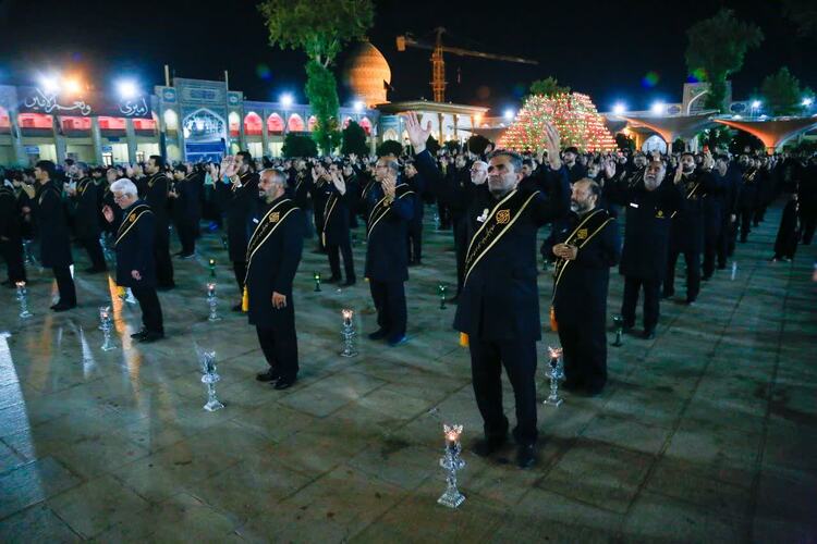 خادمیاران و یاوران رضوی استان فارس به همراه خدام حرم احمدی و محمدی (ع)، در بارگاه منور شاهچراغ در شب شام شهادت حضرت رضا (ع) با در دستداشتن لالههای روشن، به عزاداری و مرثیهسرایی پرداختند و در این آیین معنوی جلوهای از ارادت و سوگ خالصانه به هشتمین اختر تابناک آسمان ولایت متجلی شد.