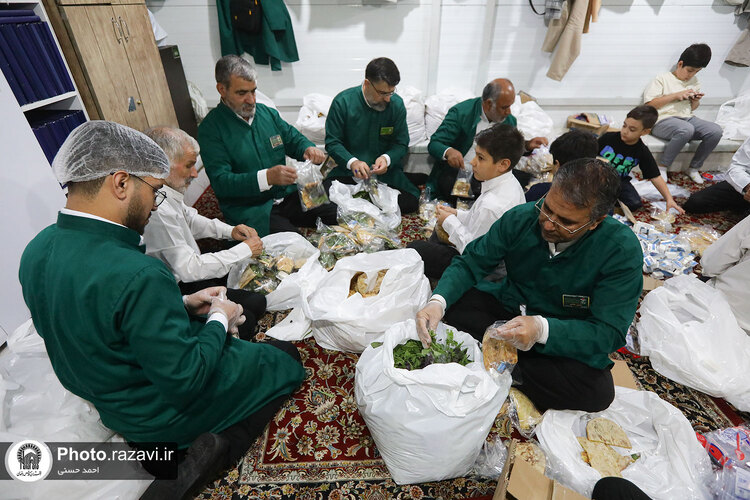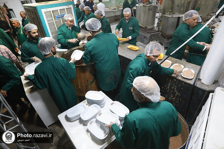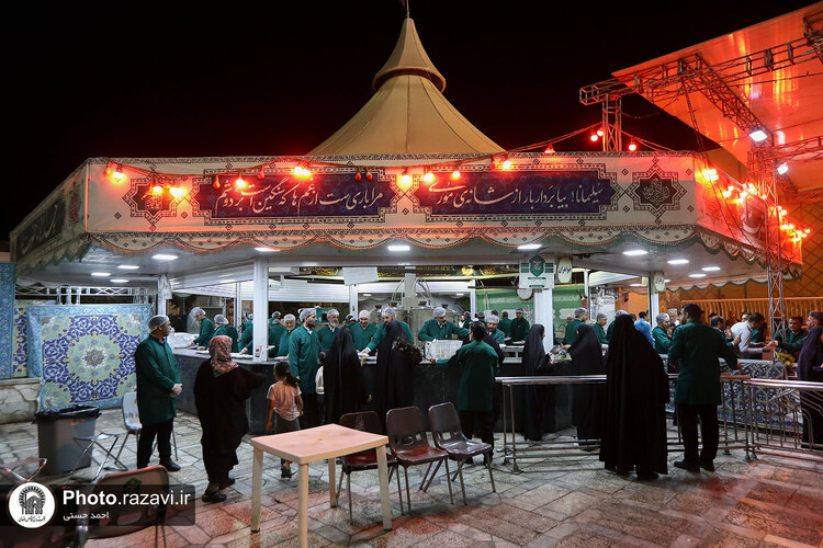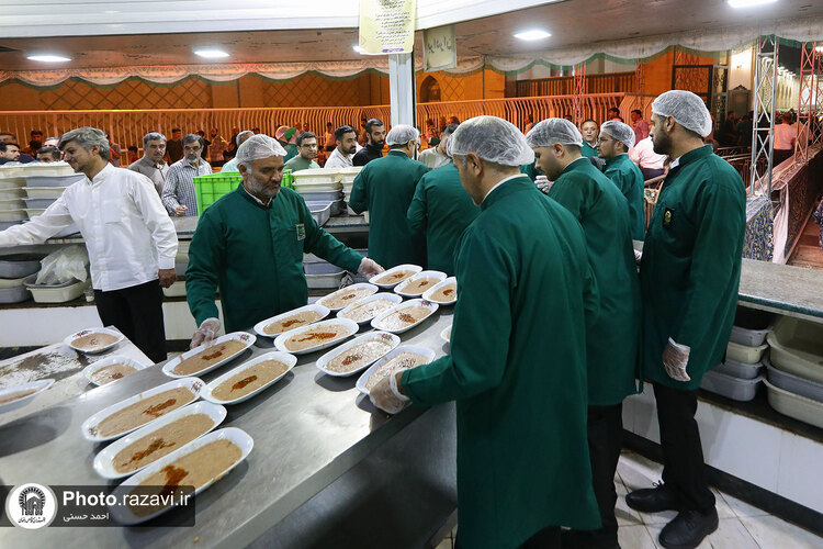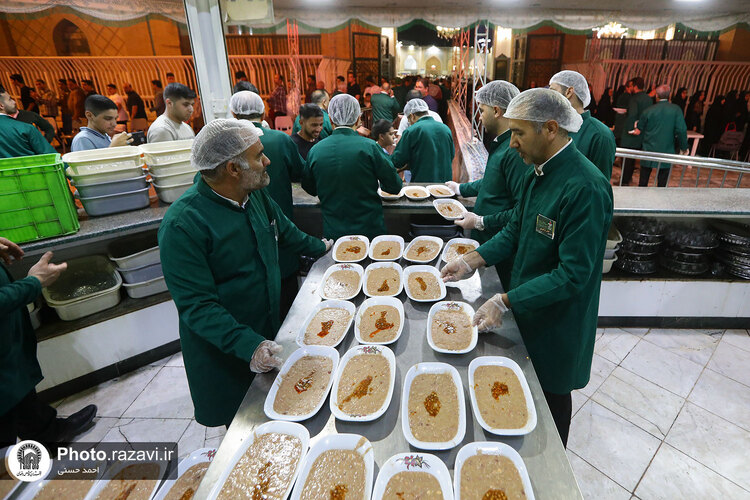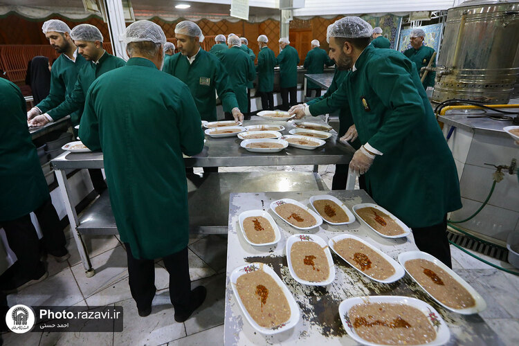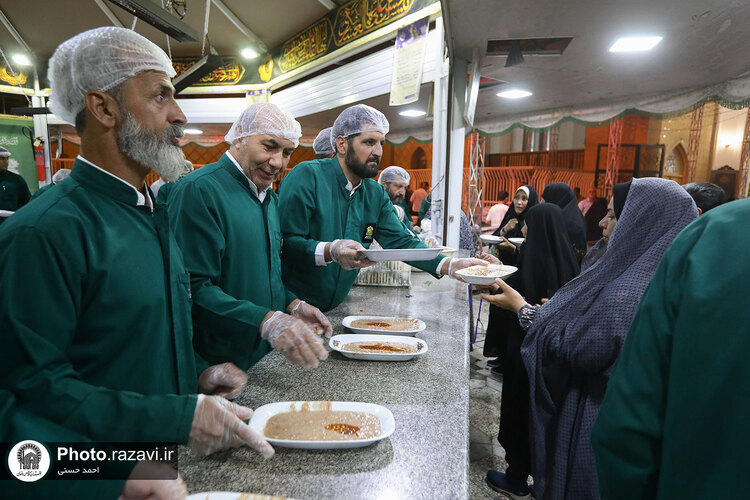 به مناسبت سومین روز شهادت امام رضا علیهالسلام، خادمان حرم مطهر رضوی با توزیع شله، از زائرین امام هشتم در چایخانه صحن غدیر حرم مطهر رضوی پذیرایی کردند.