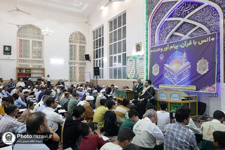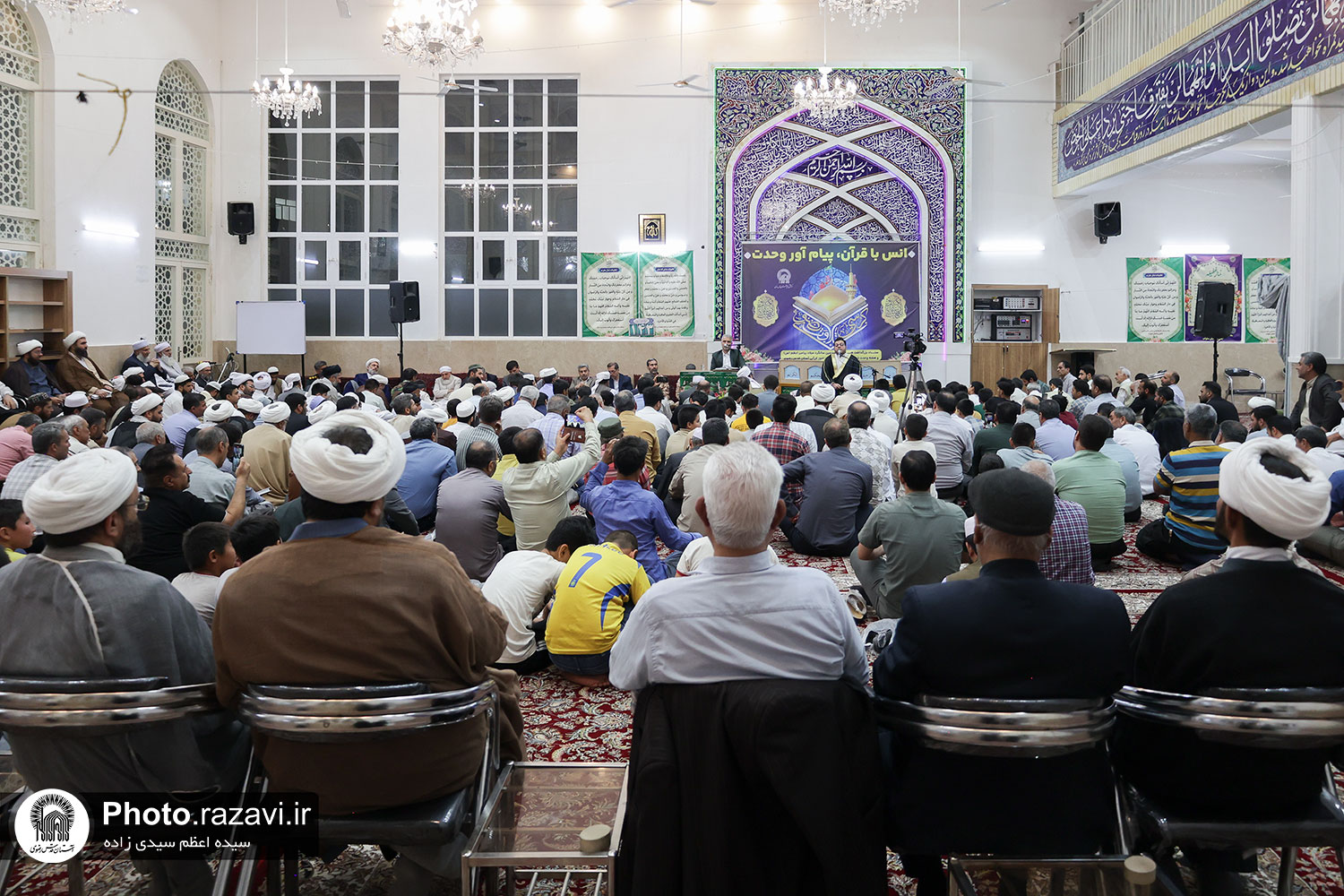 به مناسبت گرامیداشت هفته وحدت، محفل باشکوه انس با قرآن کریم به همت مرکز امور قرآنی آستان قدس رضوی با حضور قاریان برجسته کشوری در شهرستان تربتجام برگزار شد.