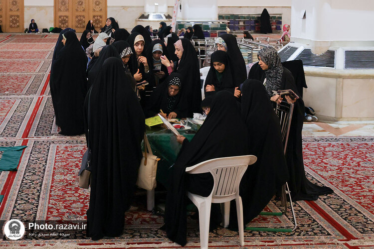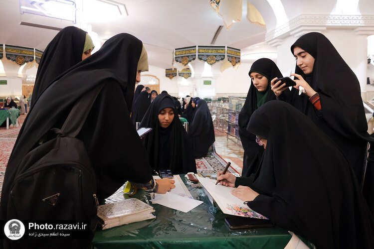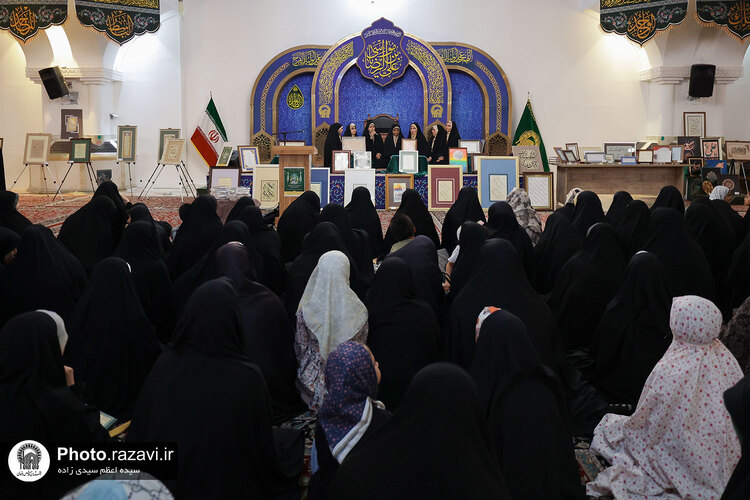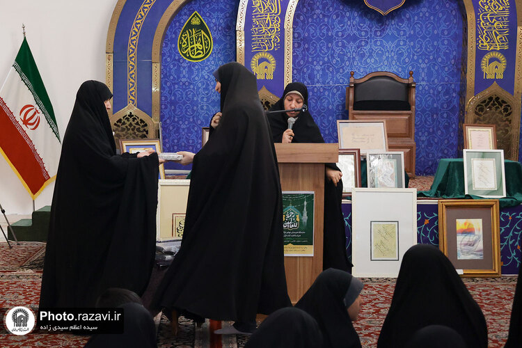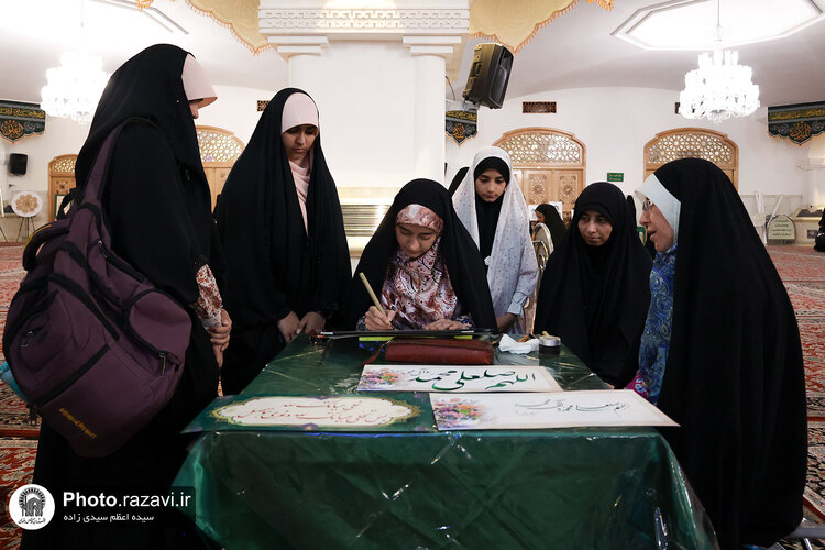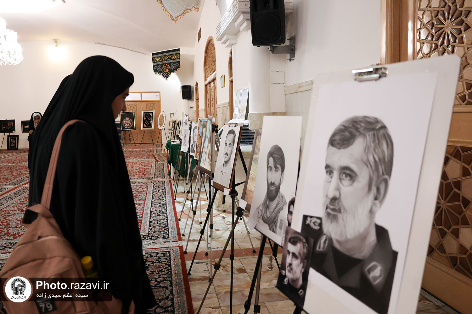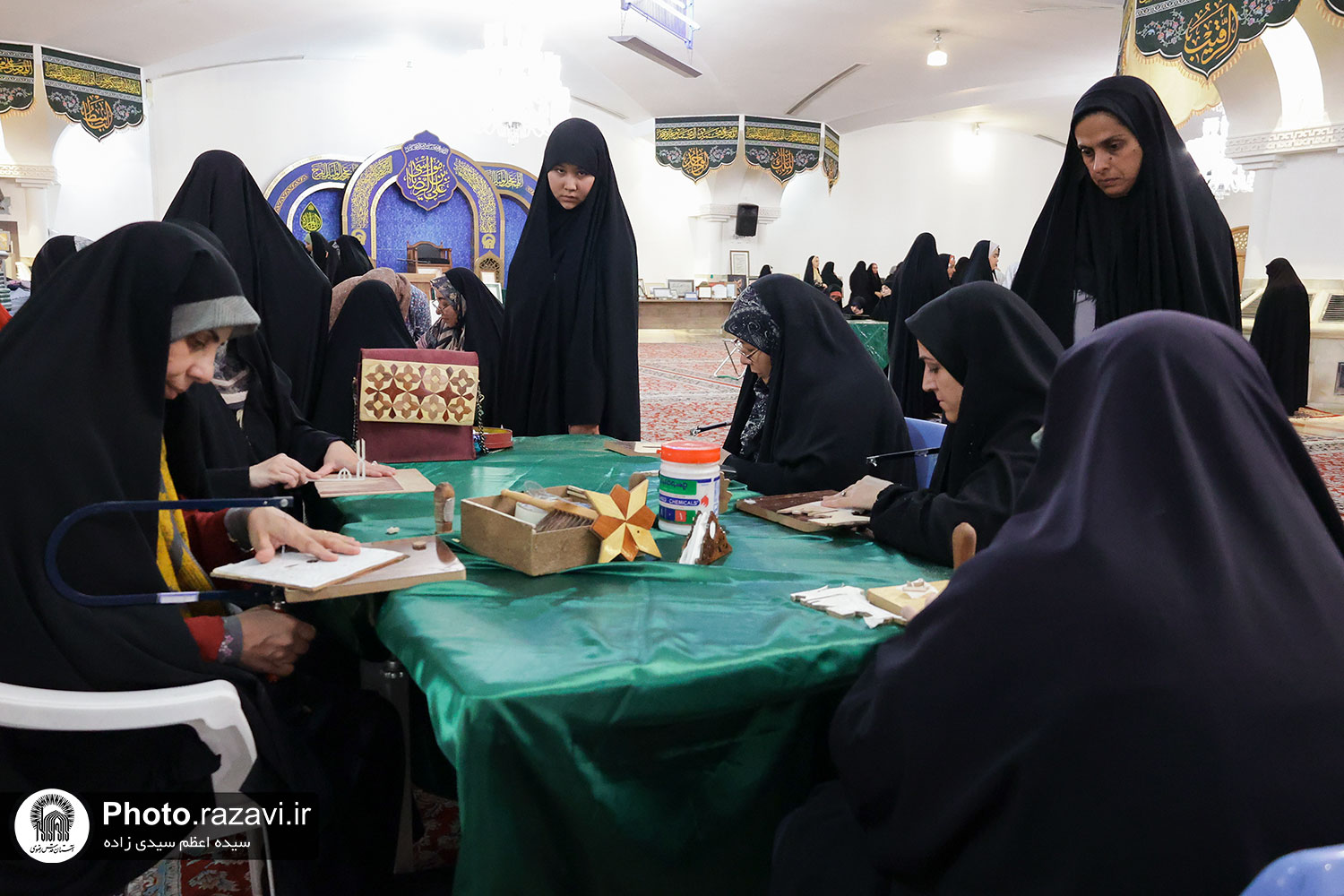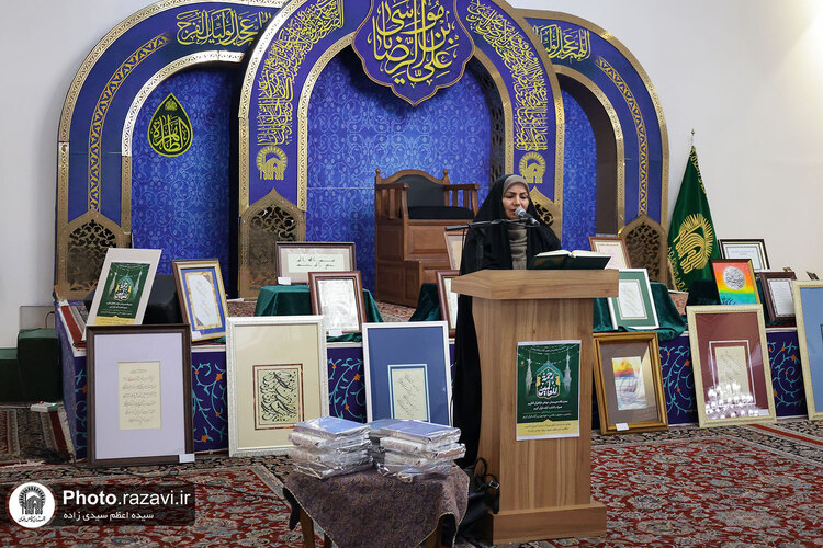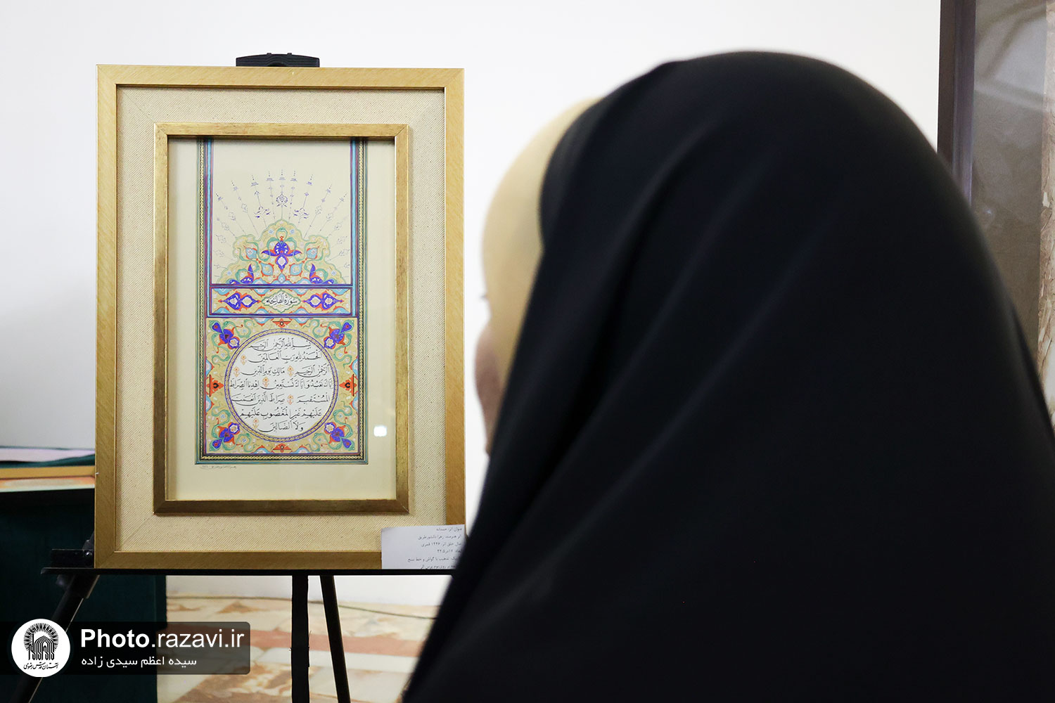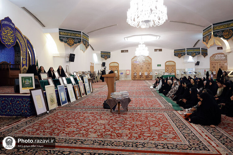 نمایشگاه 150 نفر از هنرمندان خواهر دارالقرآن کریم به مناسبت ولادت پیامبر رحمت و امام صادق علیهماالسلام، همراه با کتابت در رشتههای تذهیب، معرق، نقاشی و خوشنویسی آیات قرآن کریم، در رواق حضرت زهرا سلام الله علیها برگزار شد.