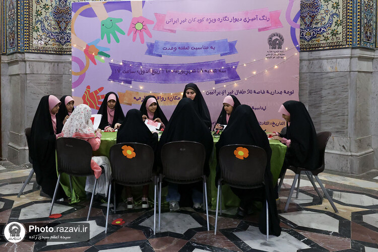 ویژه برنامه «کودکان جهان اسلام و پیامبر مهر و رحمت» به همت مدیریت زائران غیر ایرانی حرم مطهر رضوی در هشتی رواق دارالرحمه حرم امام رضا علیهالسلام برگزار شد.