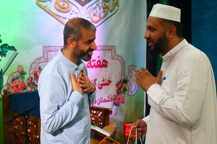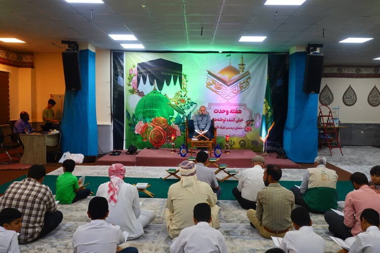 مراسم بزرگداشت میلاد حضرت محمد مصطفی (ص) و امام جعفر صادق (ع) با حضور خادم‌یاران و اقشار مختلف مردم، همراه با برنامه‌های متنوع فرهنگی و مذهبی همچون تلاوت قرآن کریم توسط قاریان برجسته استان، سخنرانی، مدیحه‌سرایی، اجرای گروه سرود پسران انتظار و تجلیل از پدر شهید تاجیک از شهدای اهل سنت، در حسینیه بهشت شهر بندرعباس برگزار شد. عکاس: عماد یگانه‌دوست