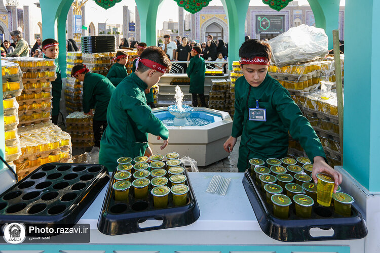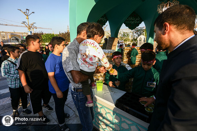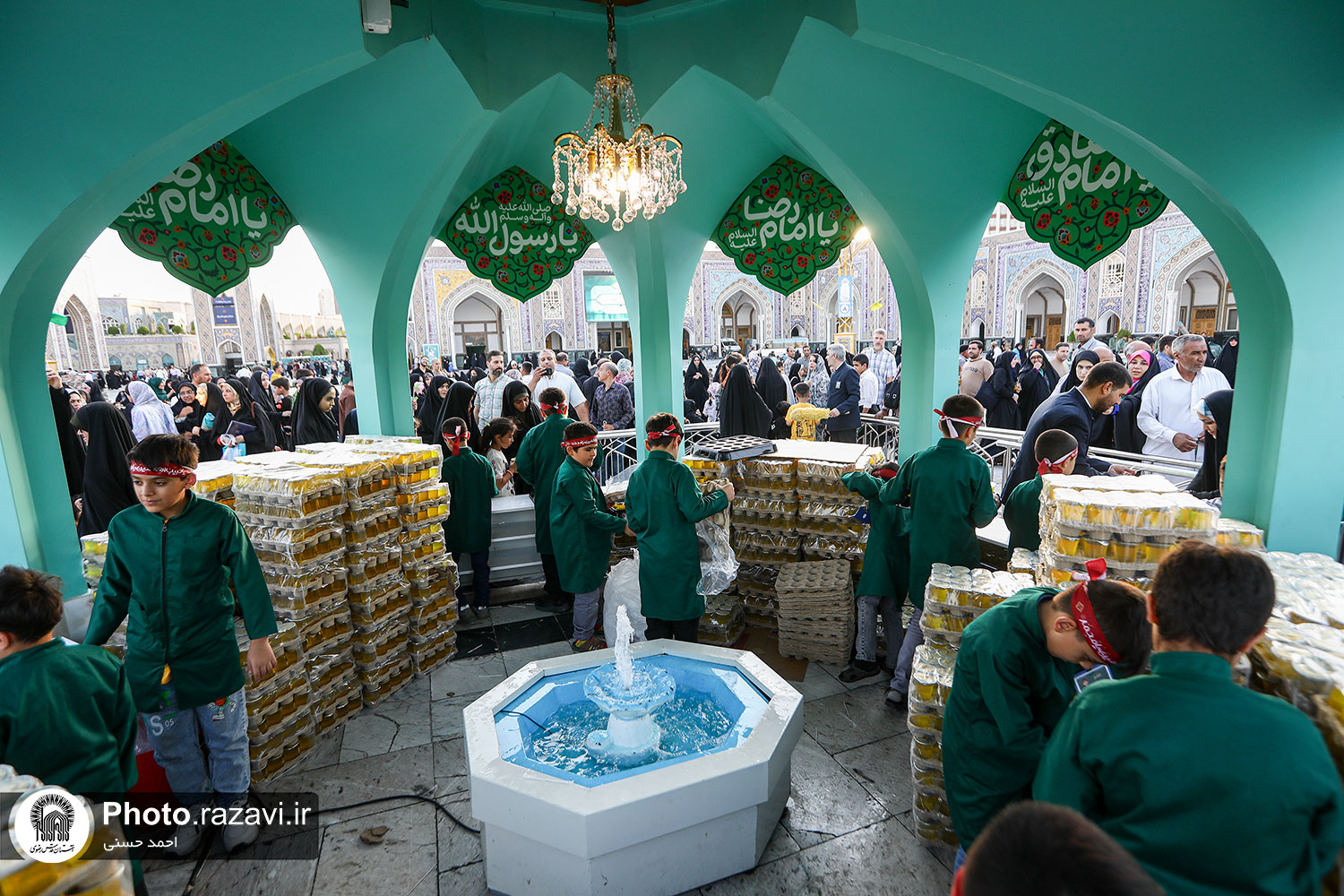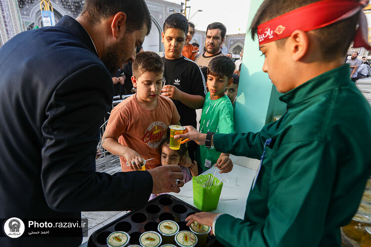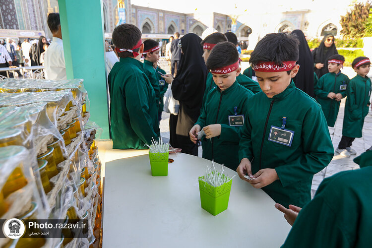 شربتخانه امام جواد علیهالسلام به مناسبت ایام ولادت باسعادت نبی مکرم اسلام حضرت محمد مصطفی(ص) و امام جعفر صادق(ع) با حضور کودکان امام رضایی در صحن پیامبر اعظم صلی الله علیه و آله حرم مطهر رضوی برپا شده است.