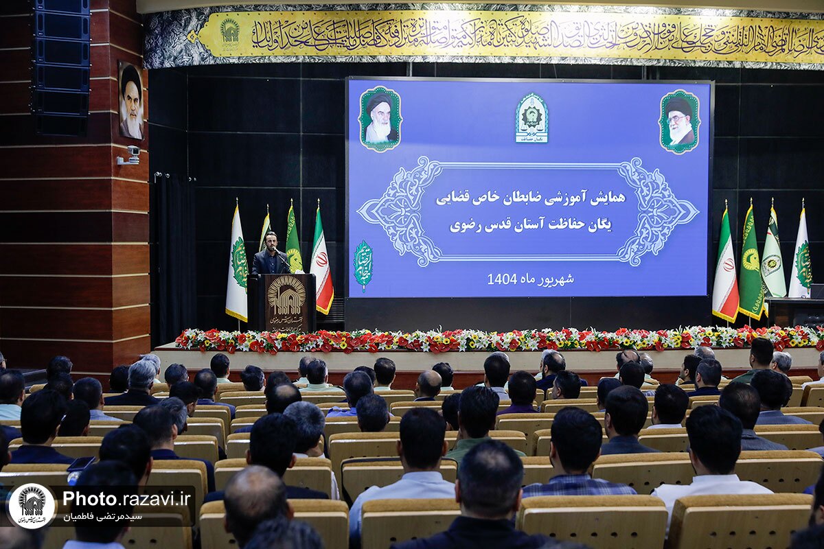 همایش آموزشی ضابطان خاص قضایی یگان حفاظت، روز دوشنبه ۳۱ شهریور ۱۴۰۴ با سخنرانی سرهنگ علیرضا حسینعلی زاده؛ فرمانده یگان حفاظت آستان قدس رضوی و حجت الاسلام زرکمی؛ دادیار معاونت نظارت بر امور دادسراهای شهرستانهای خراسان رضوی در سالن همایشهای آستان قدس رضوی برگزار شد.
