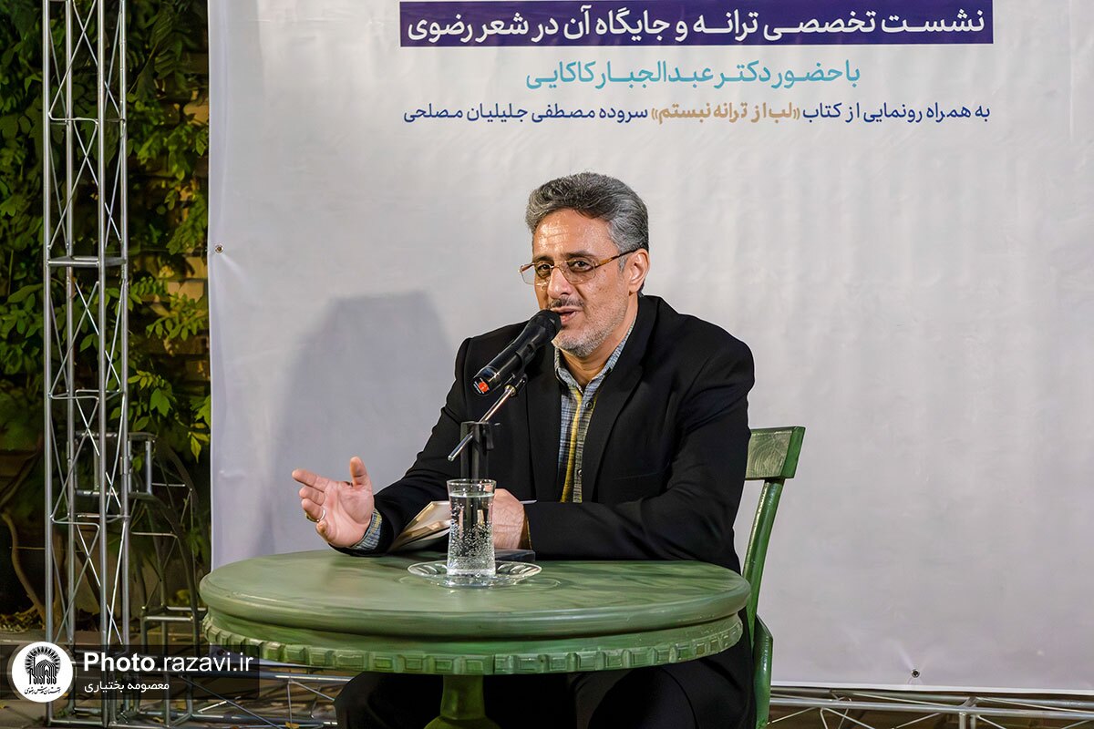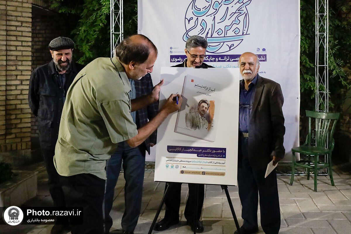 نشست تخصصی «ترانه و جایگاه آن در شعر رضوی»، روز پنجشنبه ٩ مهر ١۴٠۴ با حضور شاعر و ترانهسرای ایران، دکتر عبدالجبار کاکایی به همراه رونمایی از کتاب «لب از ترانه نبستم» سروده مصطفی جلیلیان مصلحی و جمعی از شعرای مشهدی و علاقمندان به شعر و ادب در موسسه آفرینشهای هنری آستان قدس رضوی برگزار شد.