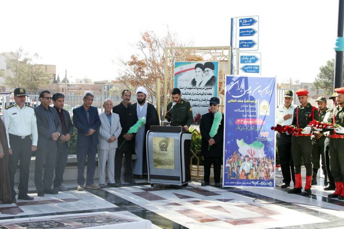 شرکتکنندگان در این آیین ضمن گرامیداشت یاد و خاطره دلاورمردیها، رشادتها و جانفشانیهای شهدا با قرائت فاتحه و زیارتنامه به مقام شامخ آنان ادای احترام کرده و با آرمانهای انقلاب اسلامی، امام خمینی (ره) و مقام معظم رهبری، تجدید پیمان کردند.