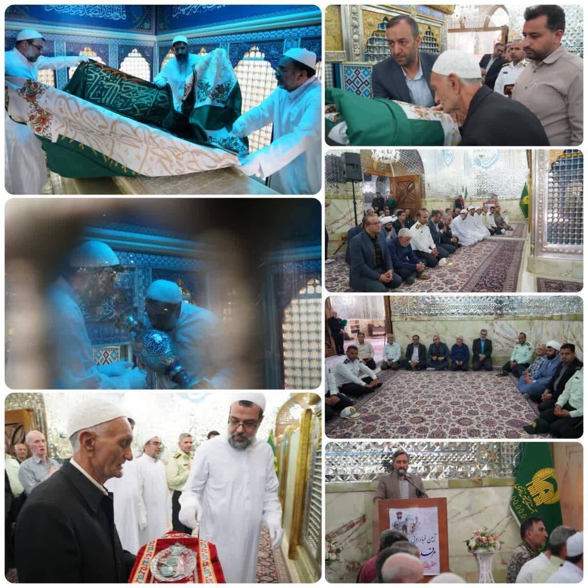 در این مراسم معنوی، مضجع منور حضرت حسین بن موسی الکاظم(ع)، با گلاب ناب شست و شو و غبارروبی، شد.