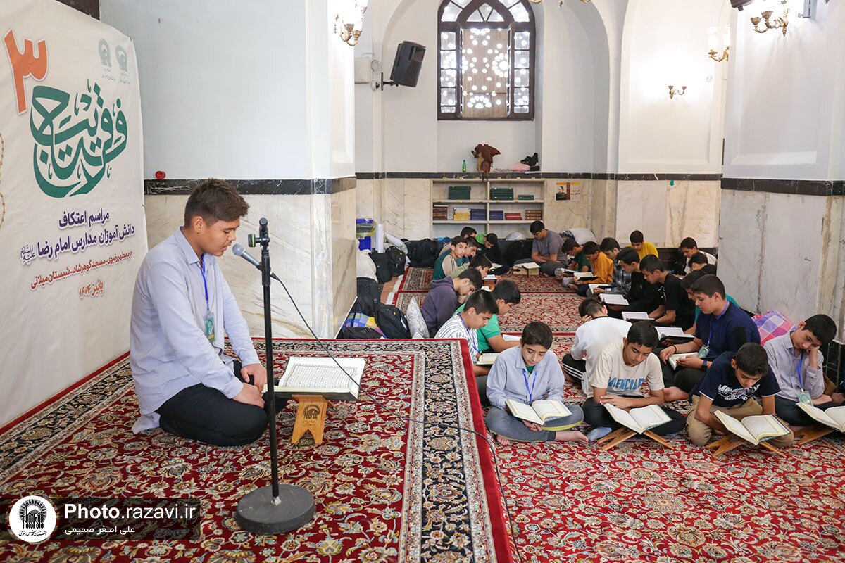 سومین دوره اعتکاف دانش آموزان مدارس امام رضا علیه‌السلام، با حضور ۱۰۰ دانش‌آموز پسر دوره اول و دوم متوسطه واحد چناران، در شبستان آیت‌الله میلانی مسجد گوهرشاد حرم مطهر رضوی برگزار شد.