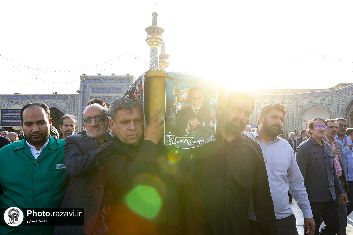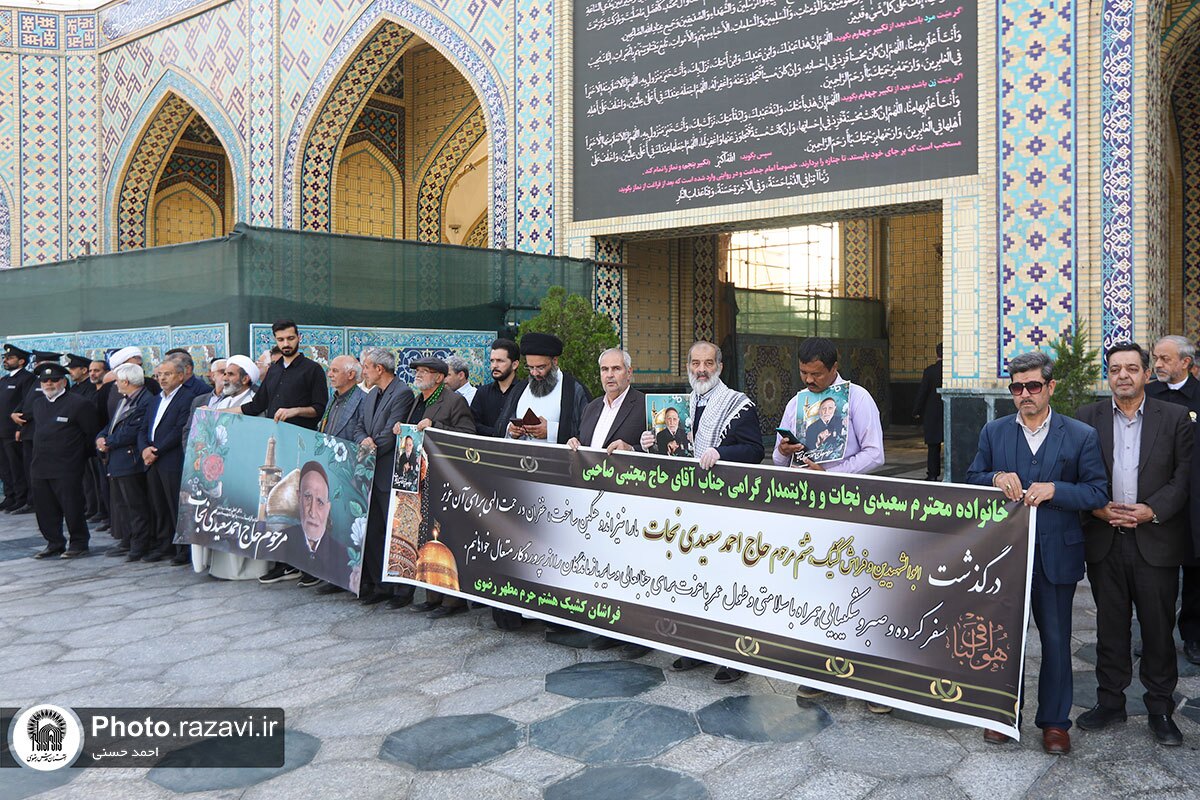 پیکر مرحوم «احمد سعیدی نجات» پدر شهیدان «محمد ابراهیم و محمد اسماعیل سعیدی نجات»، روز دوشنبه ۵ آبان ۱۴۰۴ با حضور تولیت آستان قدس رضوی، نماینده ولی فقیه در استان خراسان رضوی و جمعی از خدام حرم علی ابن موسی الرضا علیهالسلام از حسینیه پیروان دین نبوی تا حرم مطهر رضوی تشییع شد.