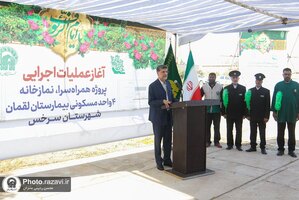 آیین آغاز عملیات اجرایی پروژه همراهسرا، نمازخانه و چهار واحد مسکونی بیماستان لقمان شهرستان مرزی سرخس، روز چهارشنبه ۷ آبان ۱۴۰۴ با حضور مصطفی فیضی؛ قائم مقام تولیت آستان قدس رضوی و جمعی از مسئولان استانی و آستان قدس رضوی در شهرستان مرزی سرخس برگزار شد. در حاشه این برنامه از ۸۰ پرستار بیمارستان لقمان سرخس تجلیل شد.