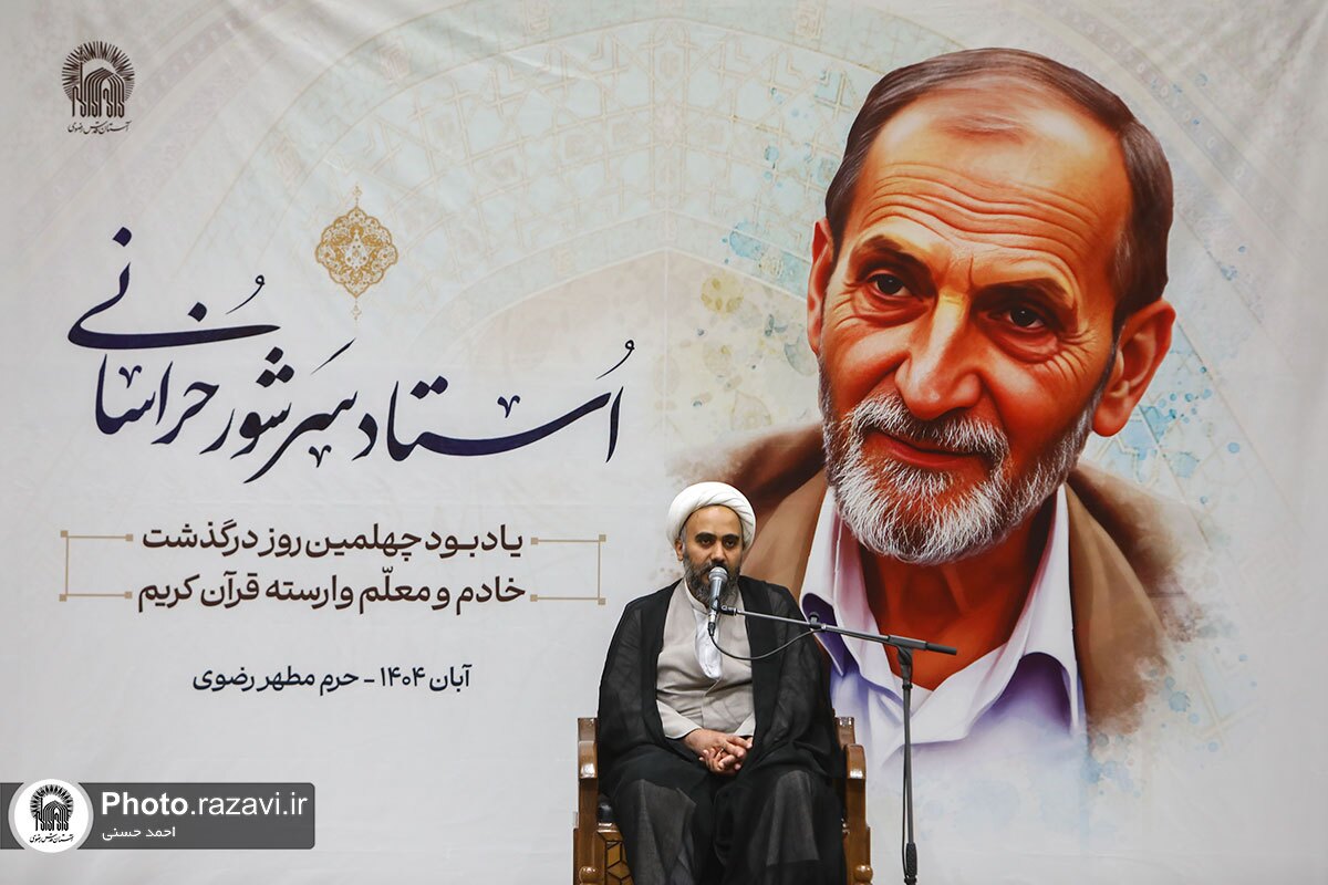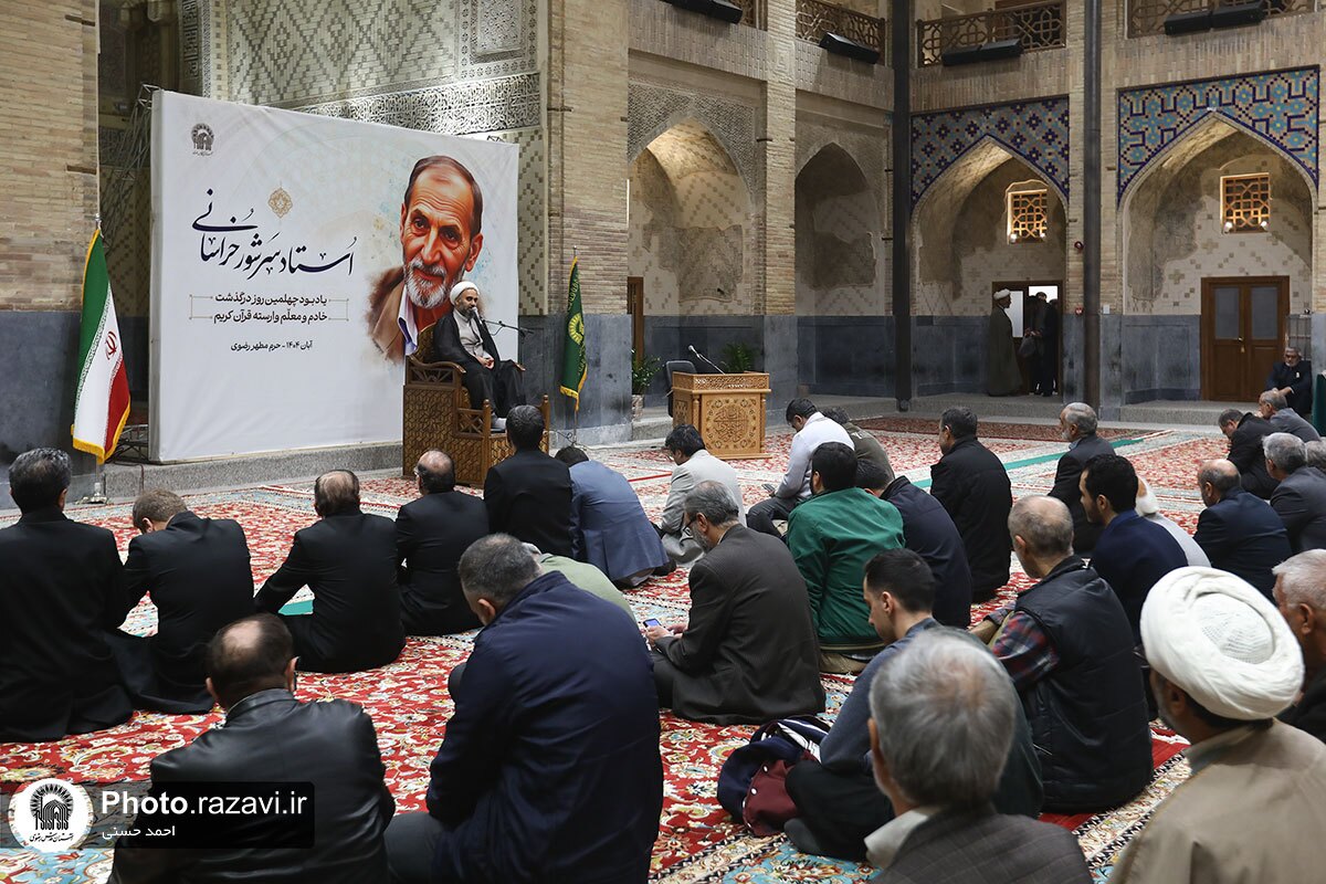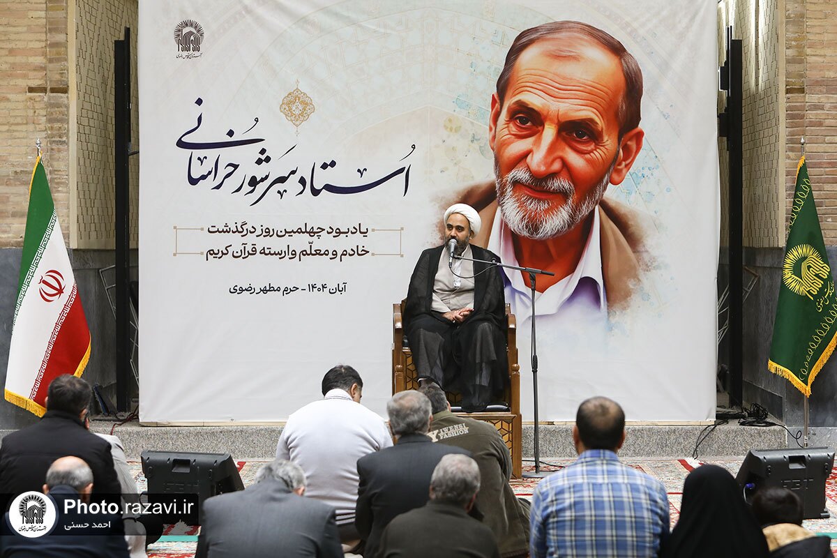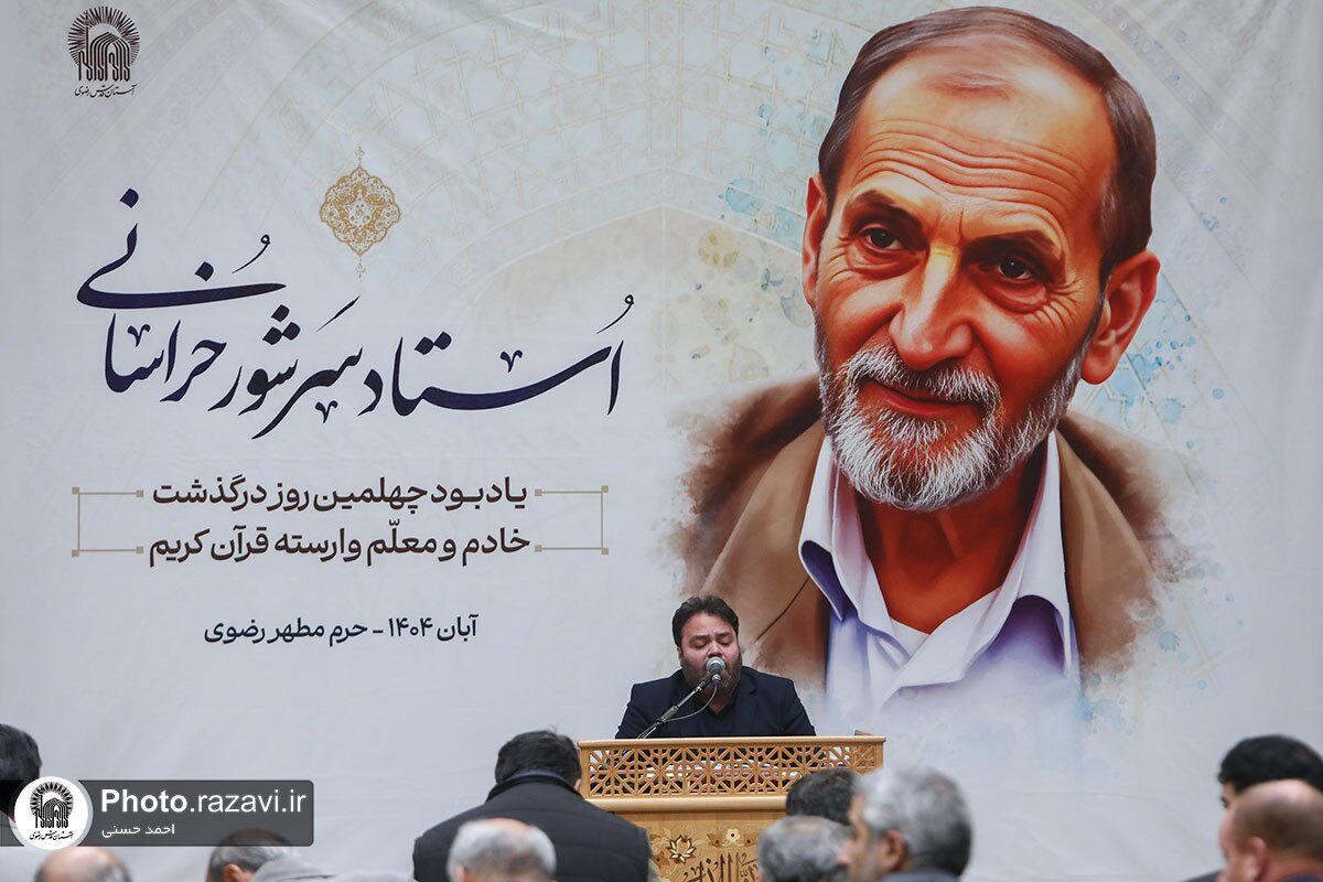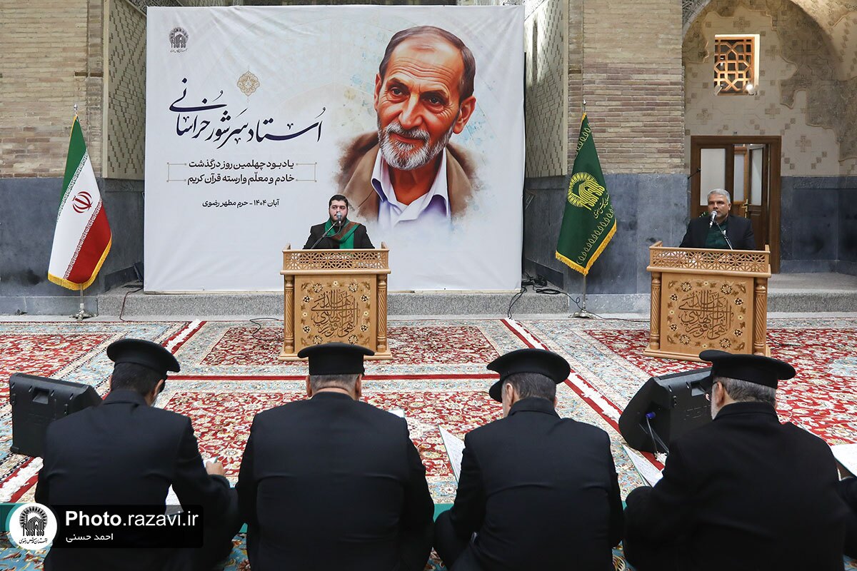 مراسم بزرگداشت چهلمین روز درگذشت ﻣﺮﺣﻮﻡ استاد ﻏﻼﻣﻌﺒﺎﺱ ﺳﺮﺷﻮﺭ ﺧﺮﺍﺳﺎﻧﯽ؛ ﻣﻌﻠﻢ ﻭ ﻣؤﻟﻒ ﮐﺘﺐ ﺁﻣﻮﺯﺵ ﻗﺮﺁﻥ ﮐﺮﯾﻢ، روز یکشنبه ۱۸ آبان ۱۴۰۴ با حضور اقشار مردم در دارالقرآن حرم مطهر رضوی برگزار شد.