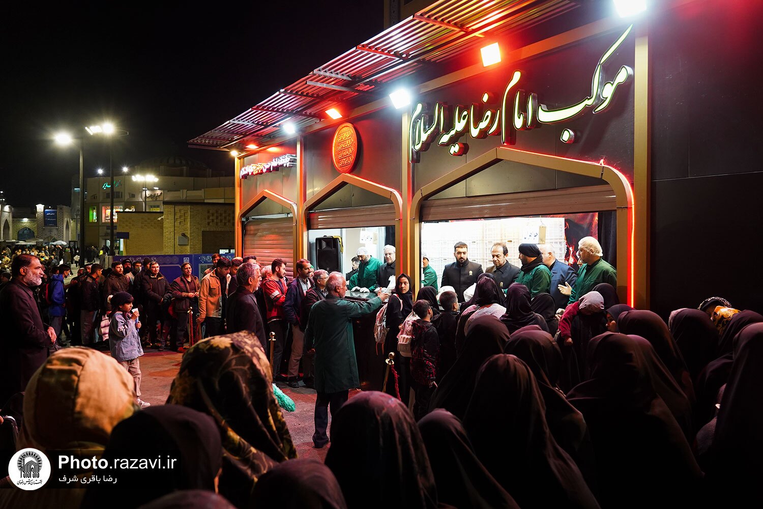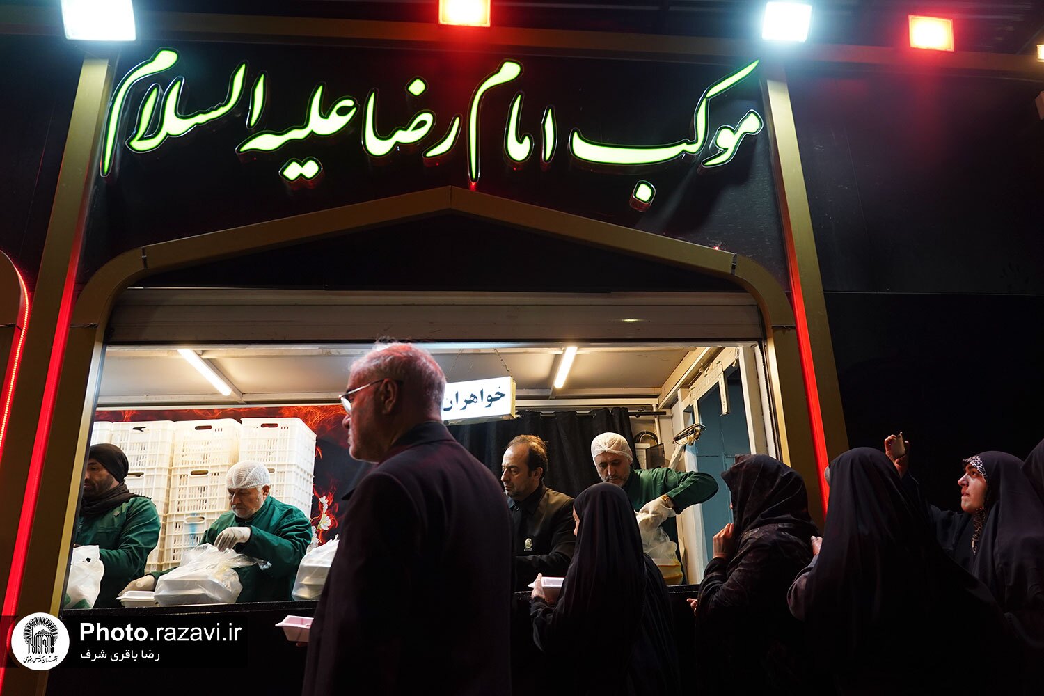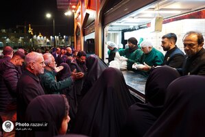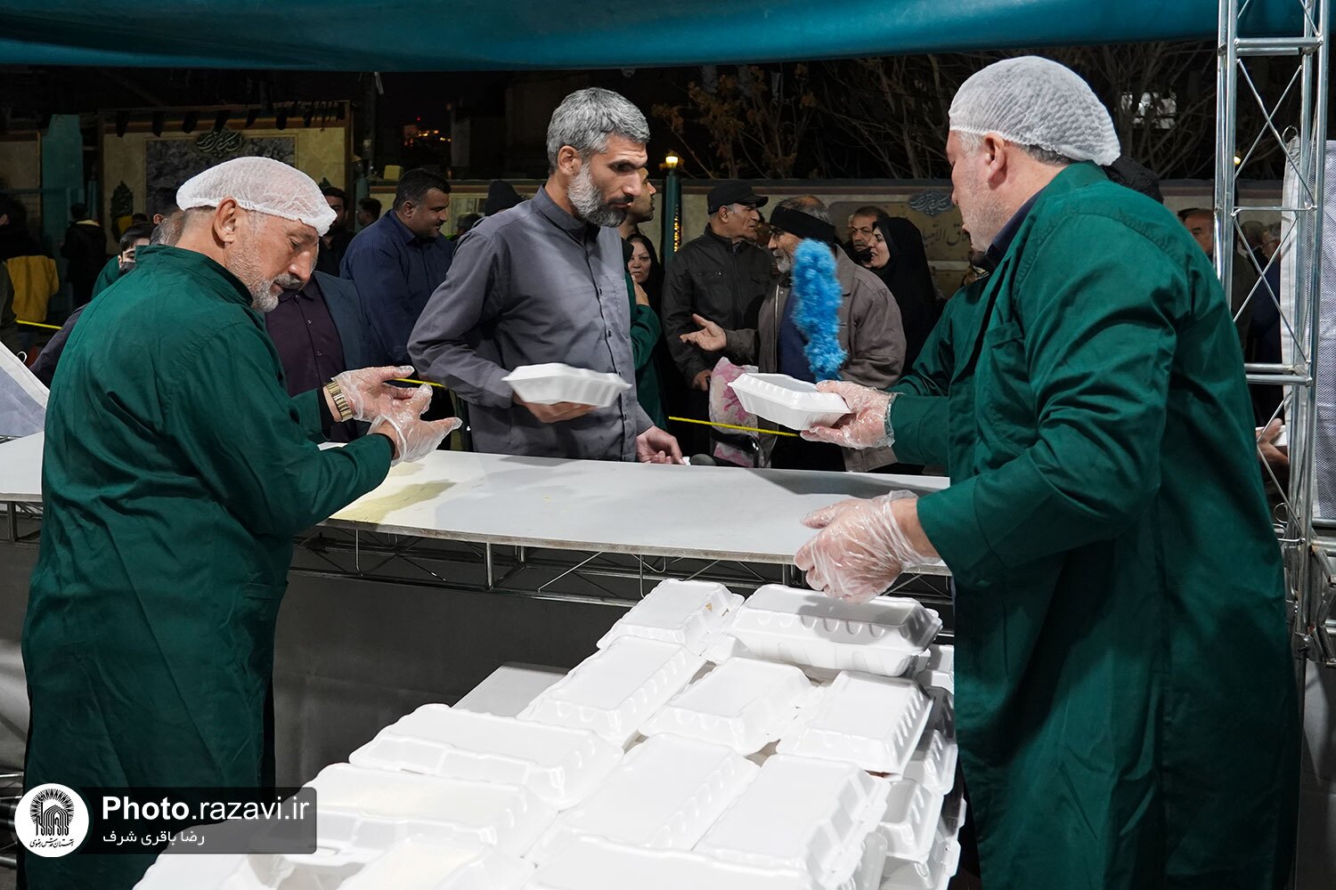 مواکب خدمت‌رسان در اطراف حرم امام رضا علیه‌السلام همزمان با ایام شهادت حضرت زهرا سلام الله علیها با توزیع غذا از زائران بارگاه منور رضوی پذیرایی کردند.