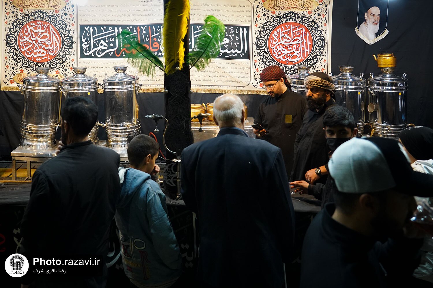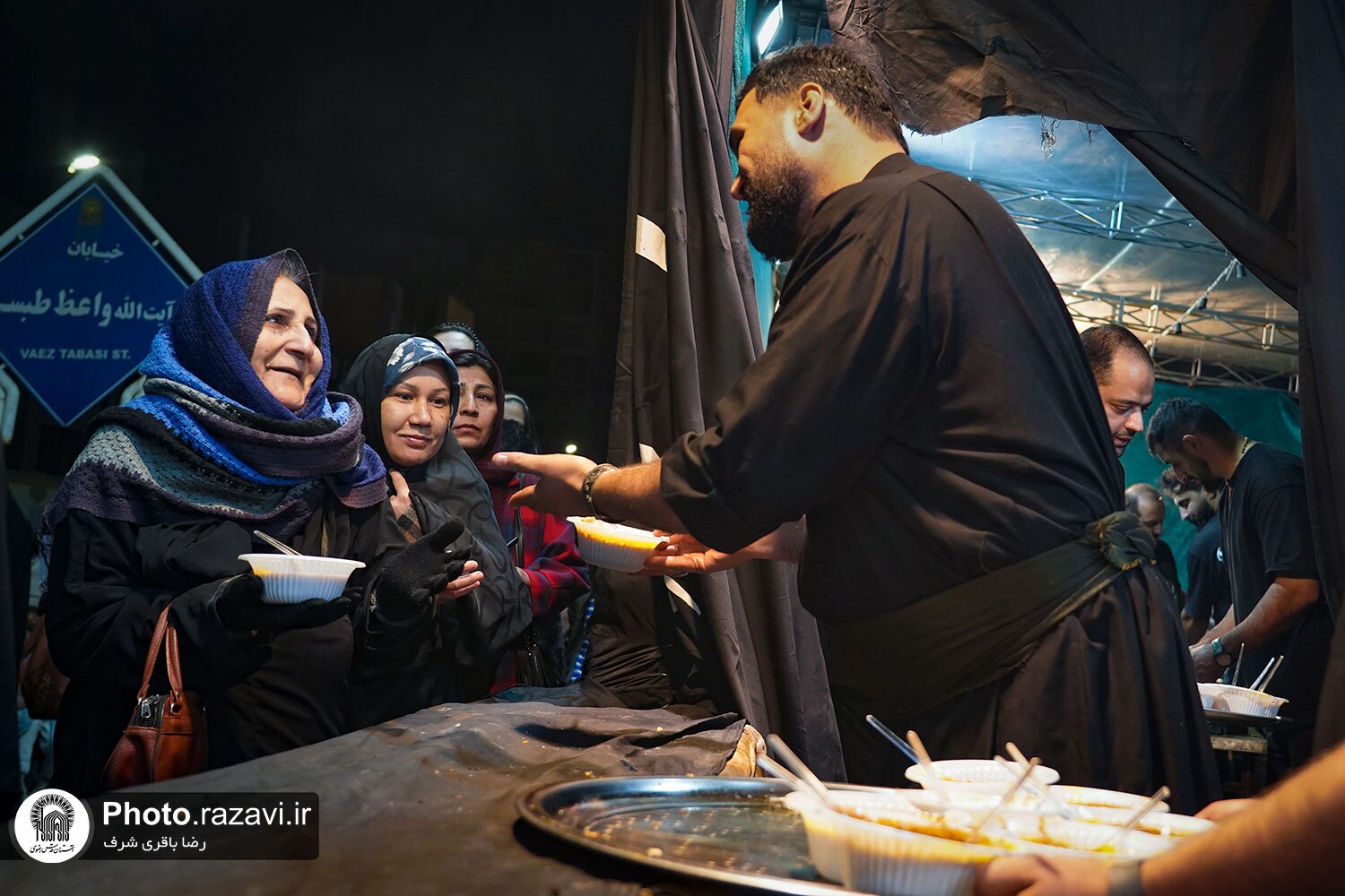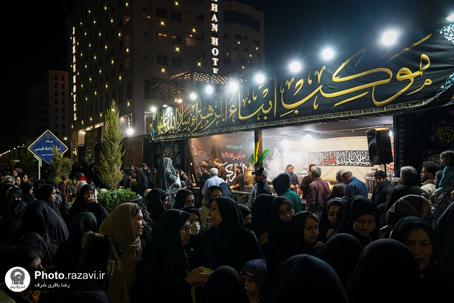 مواکب خدمت‌رسان در اطراف حرم امام رضا علیه‌السلام همزمان با ایام شهادت حضرت زهرا سلام الله علیها با توزیع غذا از زائران بارگاه منور رضوی پذیرایی کردند.