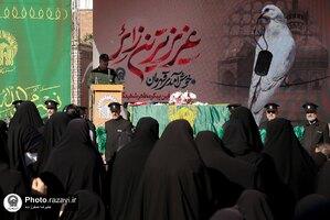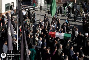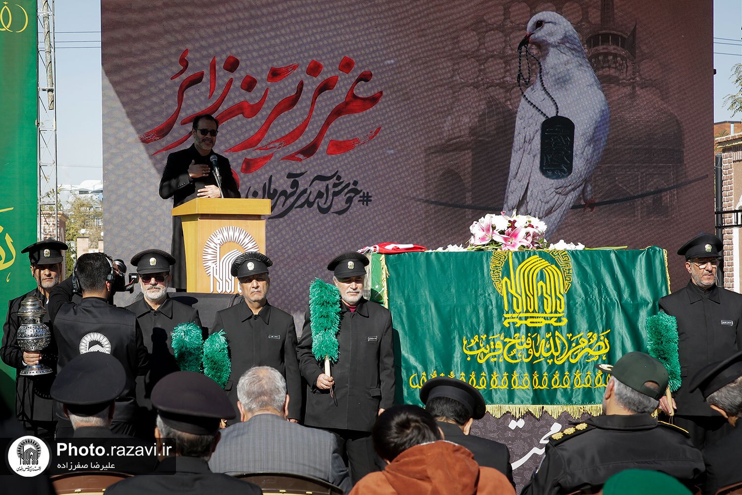 تشییع و تدفین پیکر شهید گمنام هشت سال دفاع مقدس در زائرسرای رضوی ۱