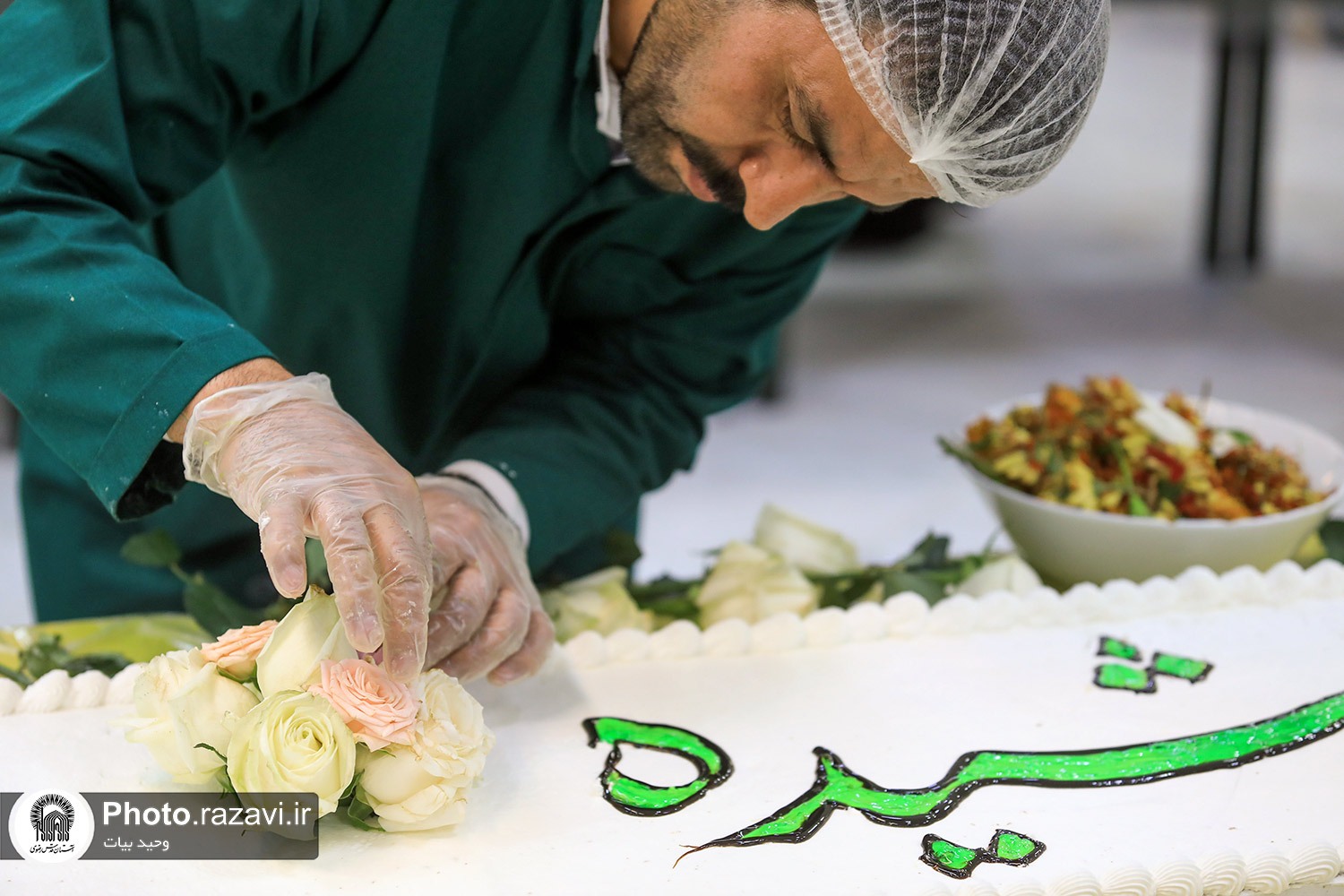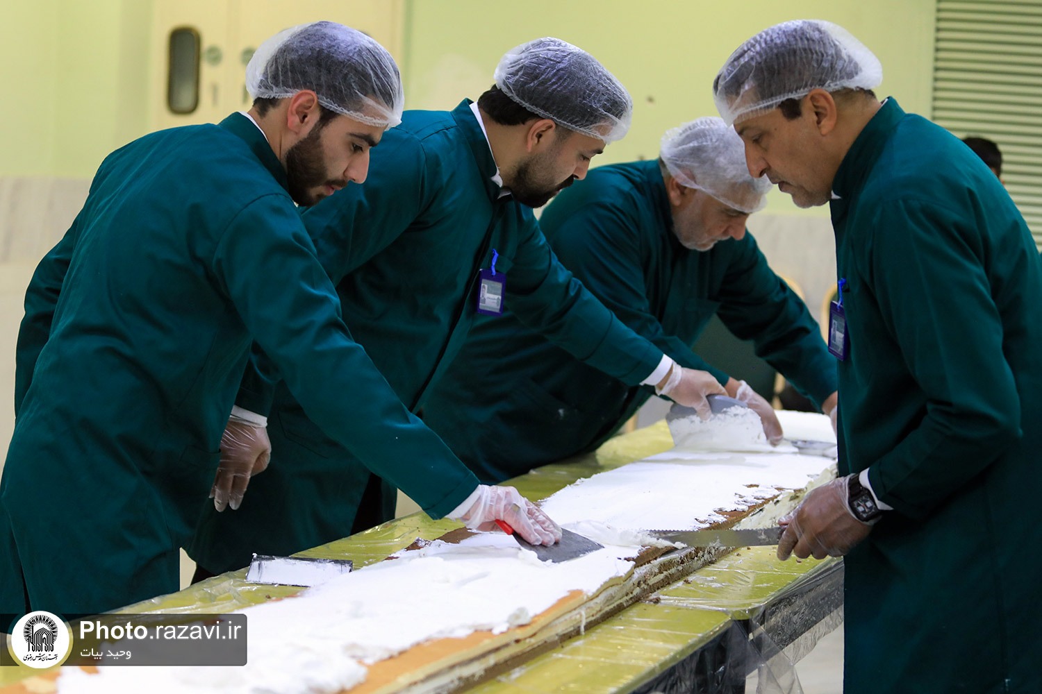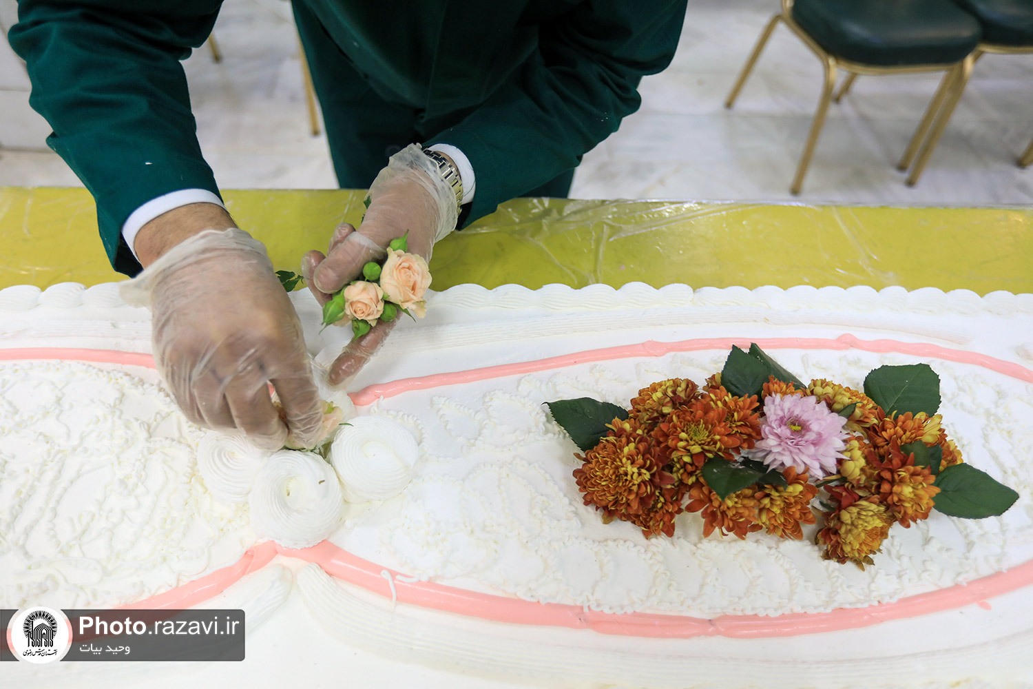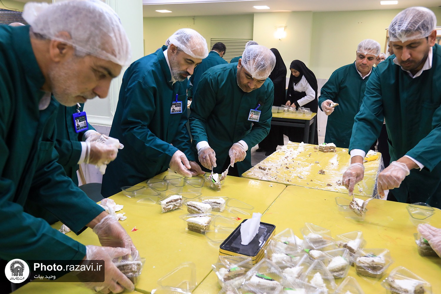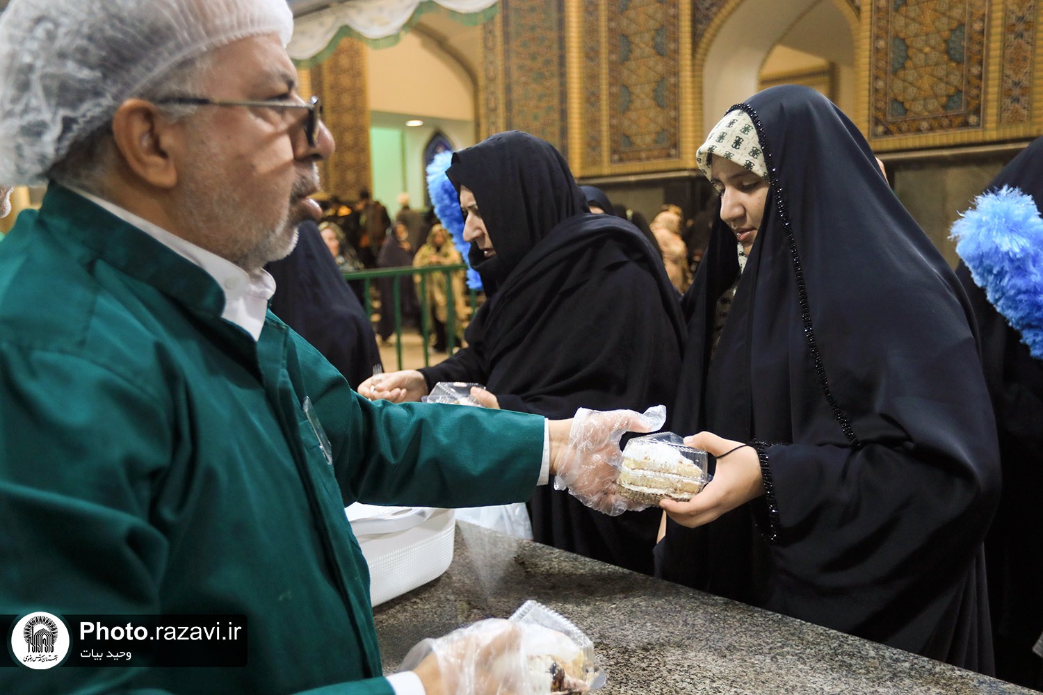 تهیه و توزیع کیک میلاد حضرت زهرا سلام الله علیها در حرم مطهر رضوی