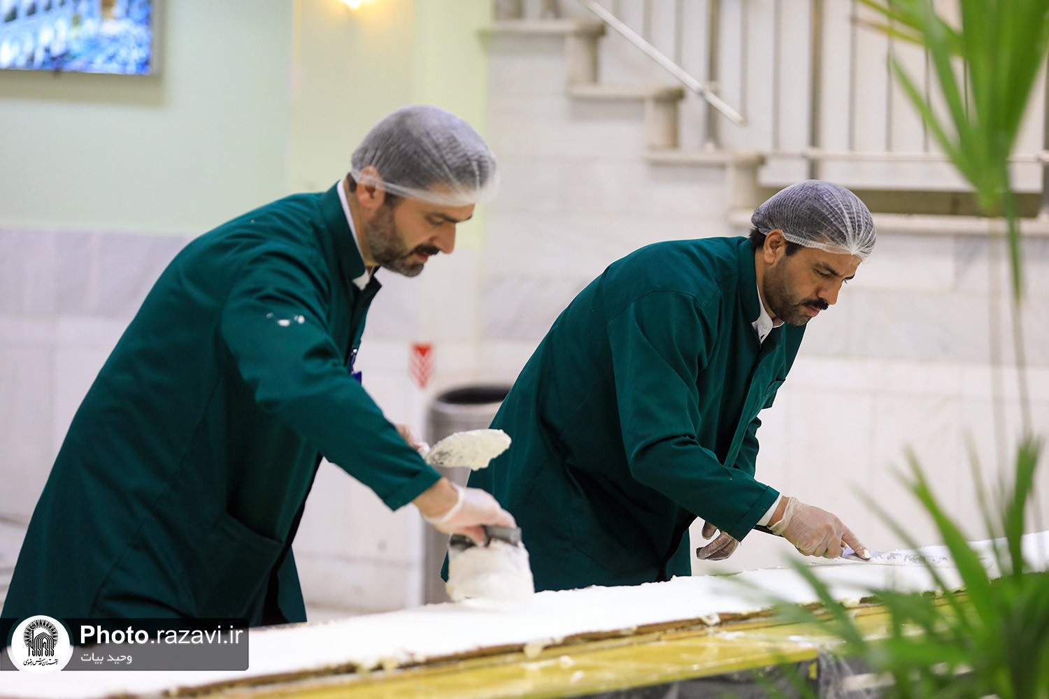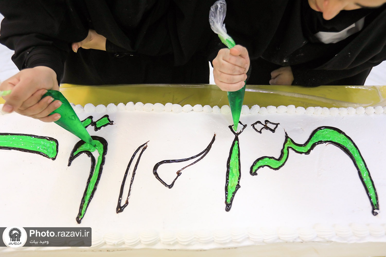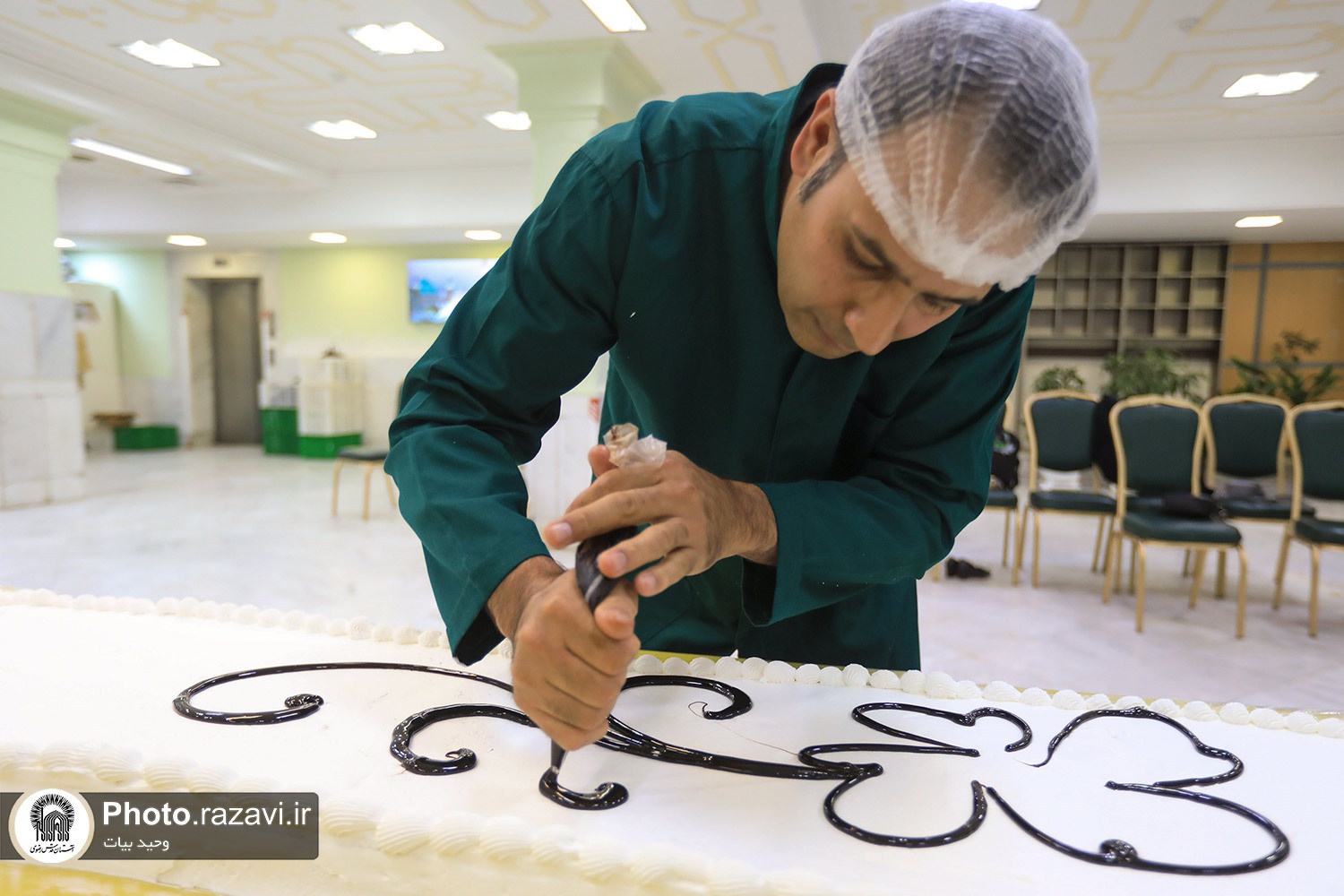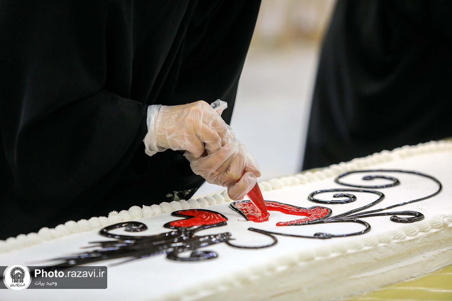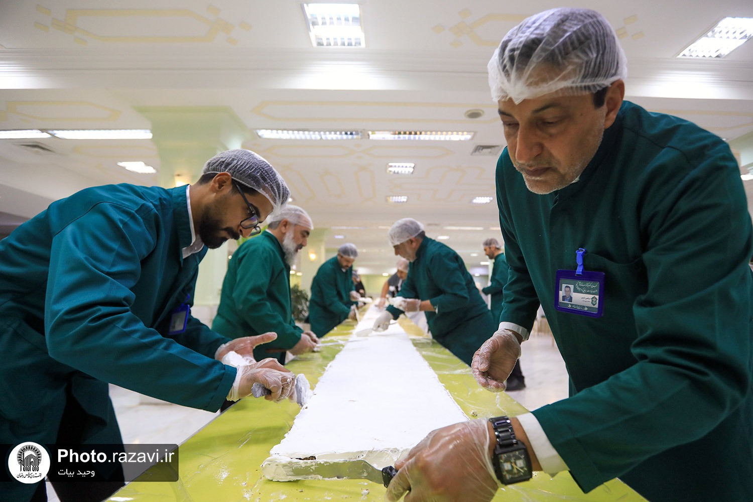 تهیه و توزیع کیک میلاد حضرت زهرا سلام الله علیها در حرم مطهر رضوی